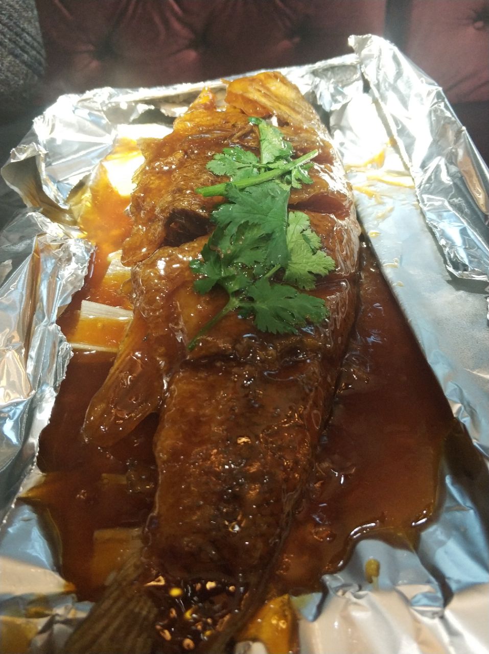 大爱锡纸鲈鱼,怎么也吃不够啊! 还点了蚝油生菜,中规中矩吧。煲仔饭味道也不错,只是份量太小了大爱锡纸鲈鱼,怎么也吃不够啊! 还点了蚝油生菜,中规中矩吧。煲仔饭味道也不错,只是份量太小了。还有个虾饺,一共四个。两人160