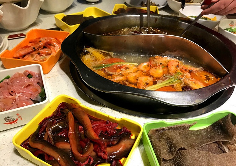 好久没吃这种主打河鲜的自助火锅了,去年在观音桥吃过,但是我记得那家店鱼的种类只有七八种,这家居然有14种鱼,好多都是我没吃过的品种,整整整。上鱼的时候,因为是活鱼现杀的,有些鱼刚杀完还在豌里头板,板得好凶还用了盘子盖到,上面用啤酒压到才能防止不板出来。金丝鱼黑好吃,以前朋友就给我推荐过这种鱼,说特别是小娃儿吃了很好,可以提高记忆力,肉多嫩滑的。小仔鲢很适合老人和小孩,因为都是大刺,吃起来比较方便。