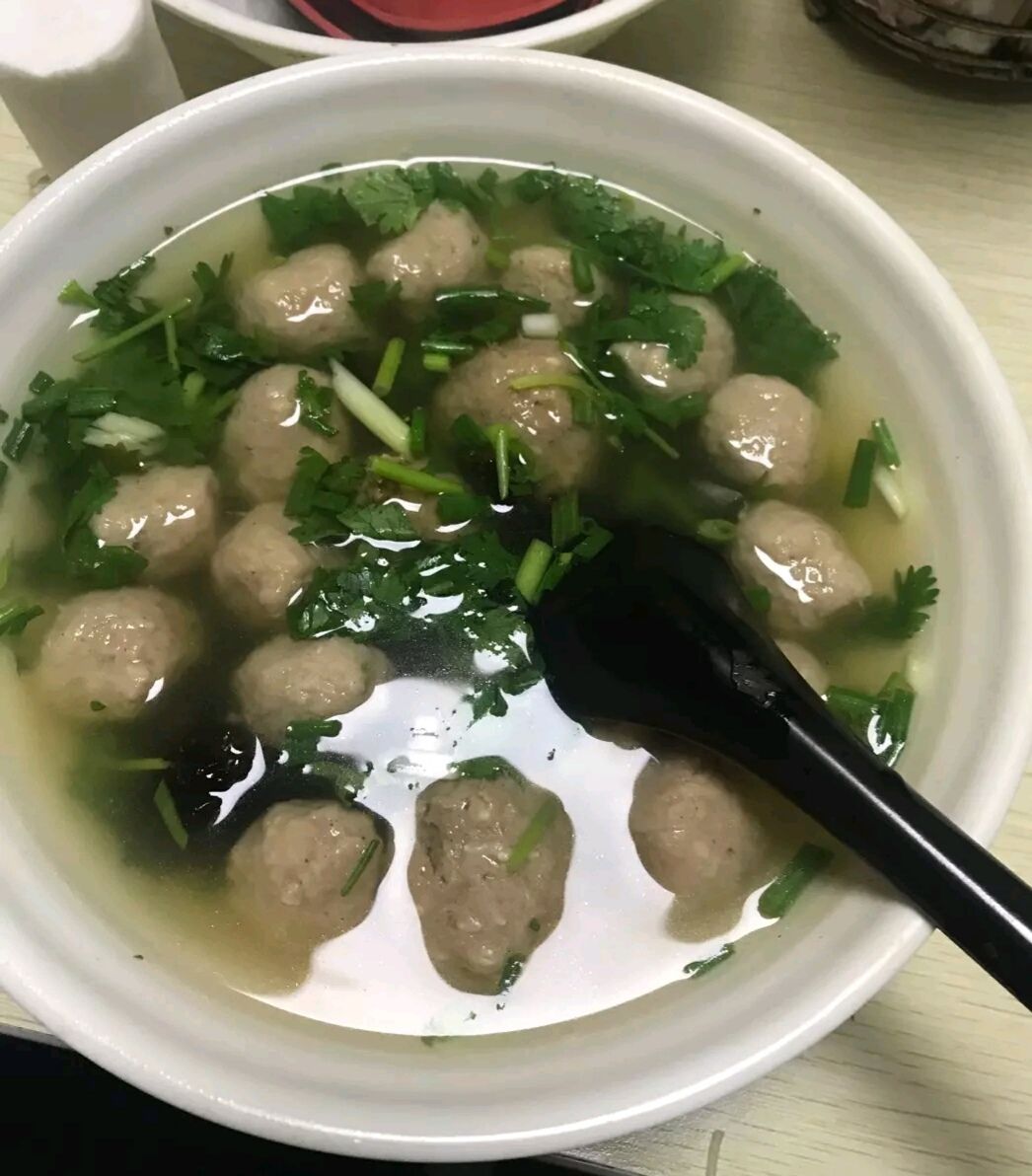 算是个老店了,特别有年代感。丸子有大丸子和小丸子的区别,我比较喜欢大丸子,吃得过瘾,丸子都是店家自己手工做的,里面加了好多白芝麻,口感也很劲道。最低10远起一碗,可以加粉丝,也可以喝纯汤,根据个人口味吧,都很不错。
