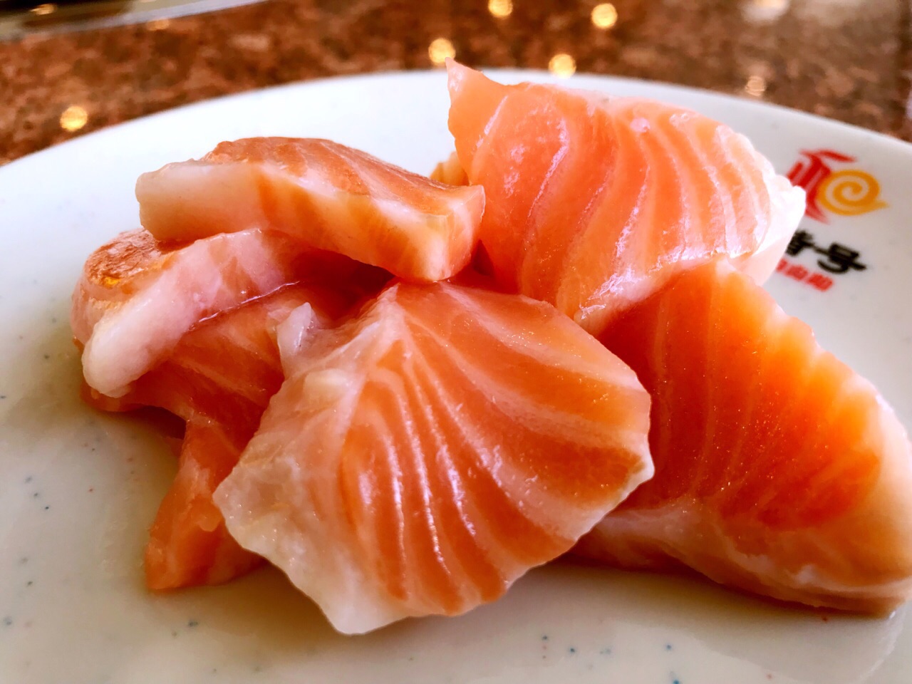 我只选了看起来相对新鲜一点的三文鱼 ✨热菜里面的锅包肉很不错,凉拌菜里还有小葱拌假鲍鱼,只是拌...