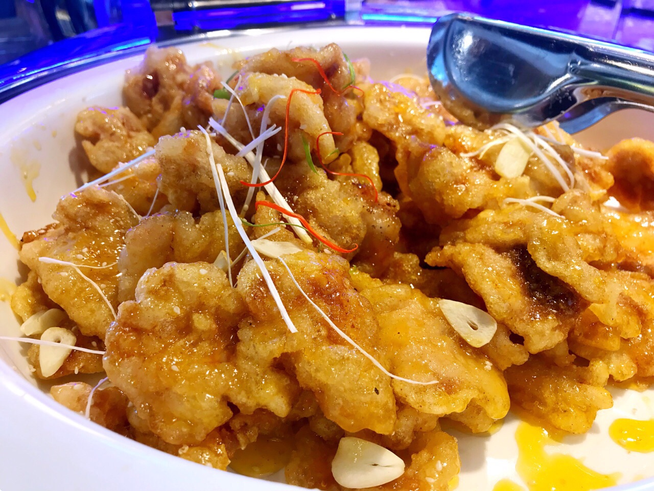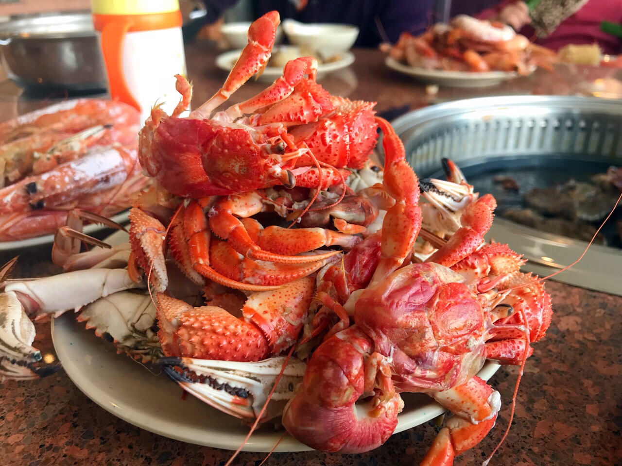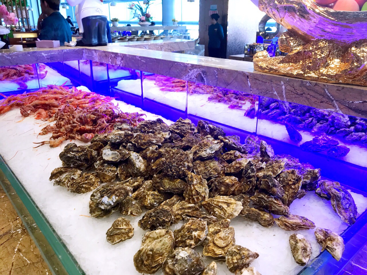 ❤️客人不多,生鱼片取餐不用排队,也不会发生哄抢海鲜的情况 ✨海鲜不限量:堆成堆的红虾、小螃蟹️、虾怪鲜活给力,蛎头可以蒸可以找服务员豁开直接生吃,我选择后者!真肥真鲜 ✨生鱼片三种不限量,我只选了看起来相对新鲜一点的三文鱼 ✨热菜里面的锅包肉很不错,凉拌菜里还有小葱拌假鲍鱼,只是拌的不太好吃. ✨主食类品种少一些,没有蒸笼小点心 ✨酒水饮料不少,果汁是原汁机鲜榨的 ✨其他就和一般自助基本一样了,烤肉、火锅的常规菜品.