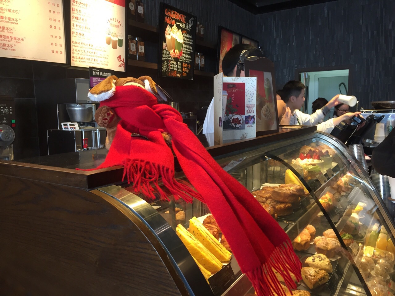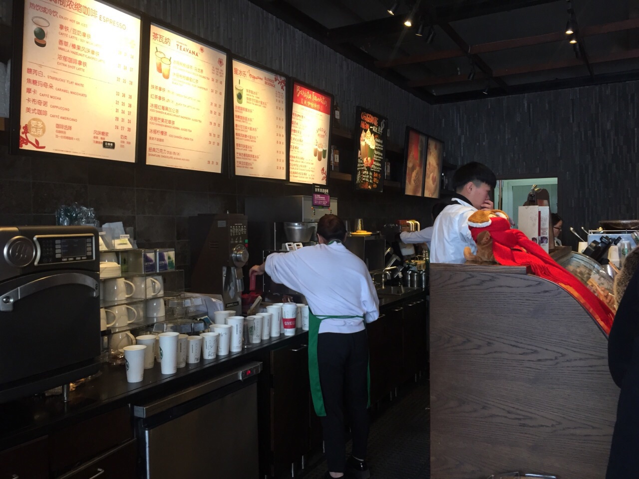 在下沙的奥特莱斯逛累了,又有点渴,去星巴克买咖啡。一进门,队伍有点长,但是里面暖和啊,就排着吧。点单后,发现前面还有10几位,上楼找座位,没找到空座,只好下楼等咖啡。要吐槽的是,店里的服务员做咖啡速度实在太慢了,等了差不多20来分钟才拿到我的咖啡。