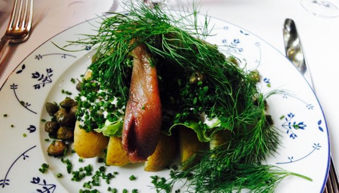读完这篇文章后,我们决定在11:30开门时试一试。我们很幸运地找到了一张2人的桌子,尽管那地方空荡荡的。到中午的时候已经满了。这是一个舒适的空间,有着传统的丹麦传统烹饪“三明治”。多大的品种!我的女儿和我想分享,她不是一个鱼球迷,所以我想也许我们会受到限制的选择。不是这样的!巨大的菜单。搭配啤酒和烧酒,这是我们旅程的最好的饭菜。我们的服务器(一个可爱有趣的女人)知识渊博,乐于助人,让我们的经历成为我们旅行中值得纪念的。如果你想确保有一张桌子,一定要提前预订。