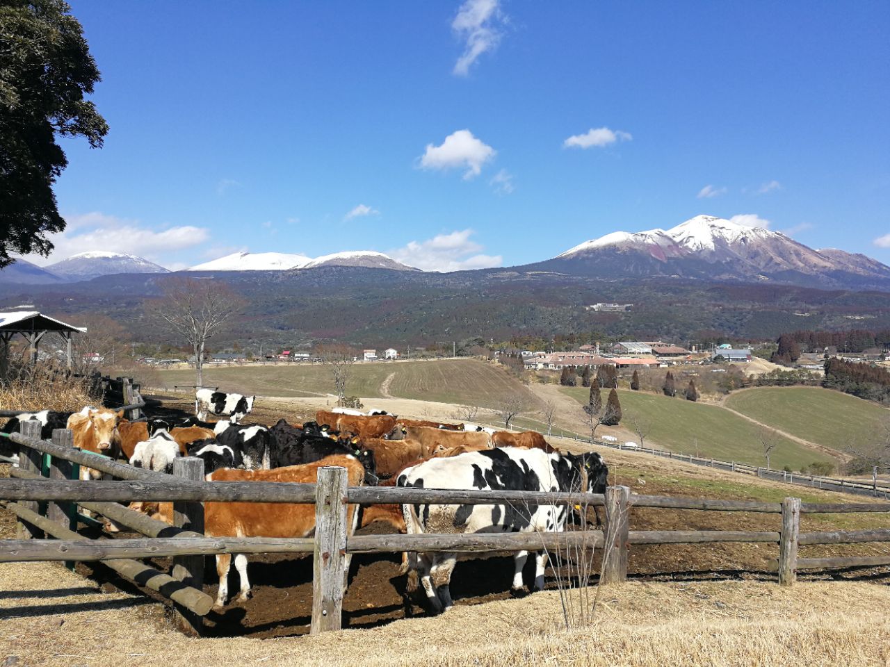 真心想說。別冬天來了。不過能看到高千穗山上的積雪,特地下午一點去看給牛牛餵食2月初來的,溫度2℃,好大風,零星雪花,好冷。。牧草已經枯黃,樹也禿了。。不過能看到高千穗山上的積雪,特地下午一點去看給牛牛餵食。。。。真心想說。。。別冬天來了