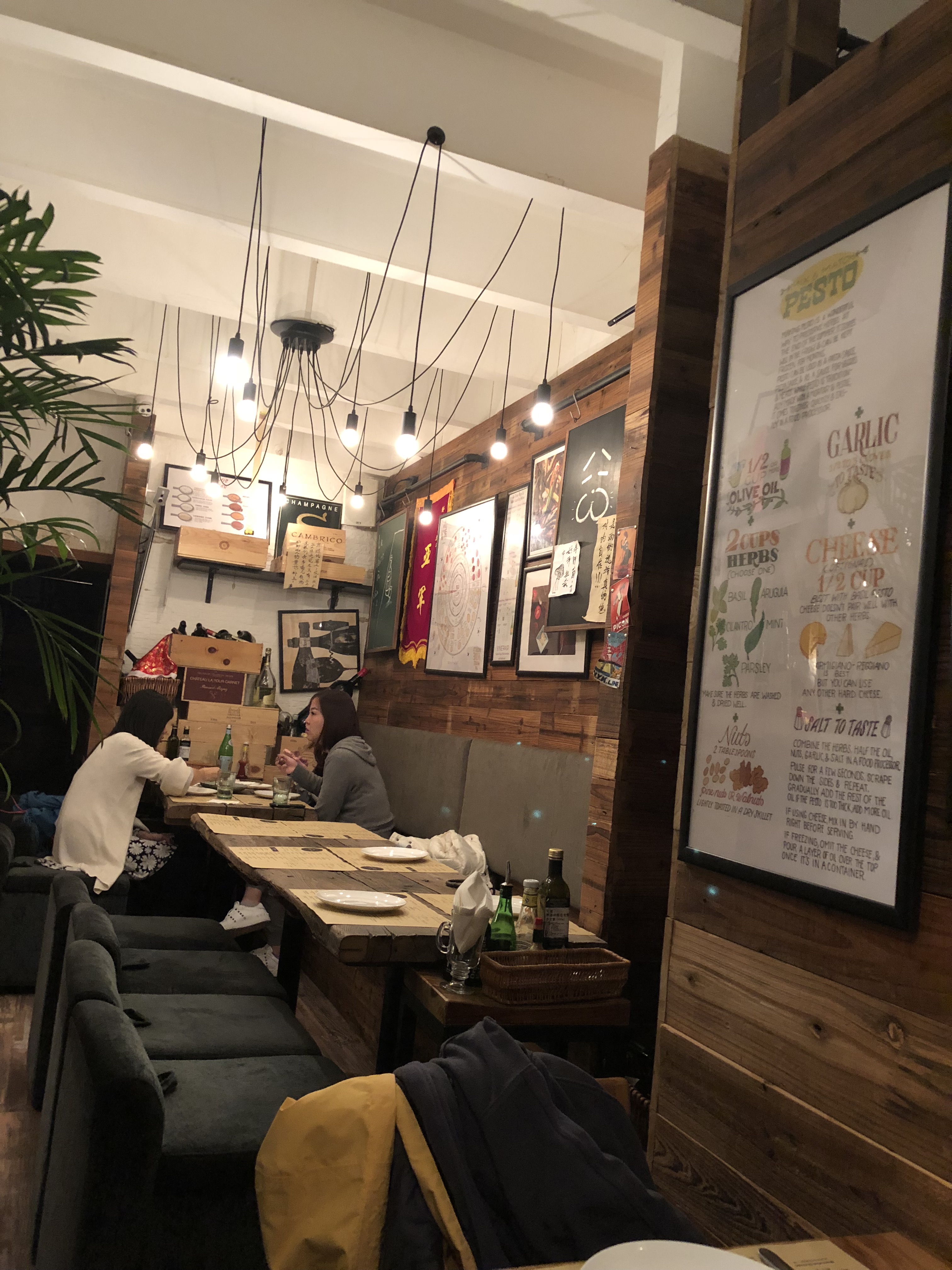 看了好评那么多,兴匆匆的去了,结果没期待种的那么好。 环境很小,而且拥挤,张贴了很多有个性有回忆的纸条,也许这样让顾客有专属感吧,呵呵。 食物味道也很一般,混合冷肉拼盘,品种挺多的,但品质一般,还没有进口超市买的好吃。 煎烤小羊排还不错,口感也不错,儿子吃的很满足。 墨鱼汁和鱿鱼虾仁烩饭味道真的有点一般,不正宗。 服务也一般,没几个工作人员。