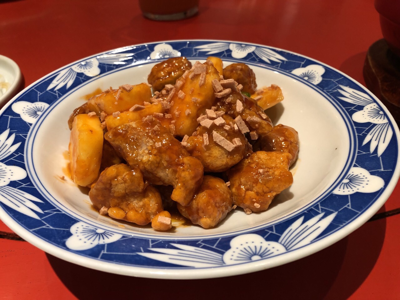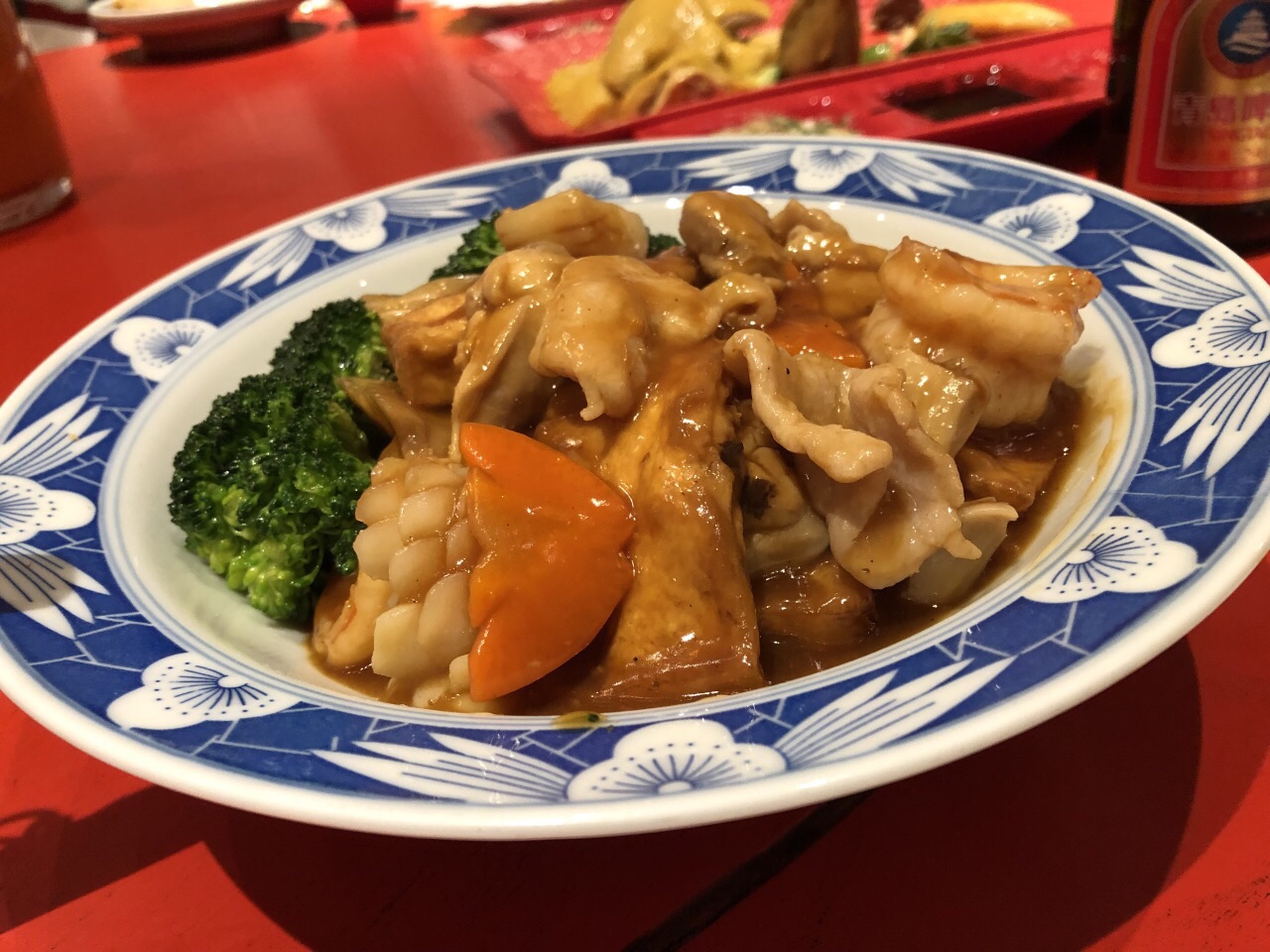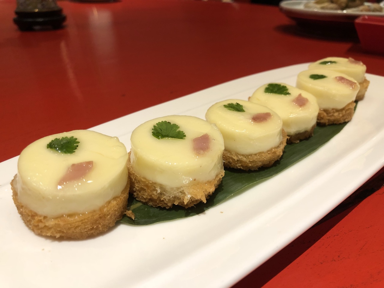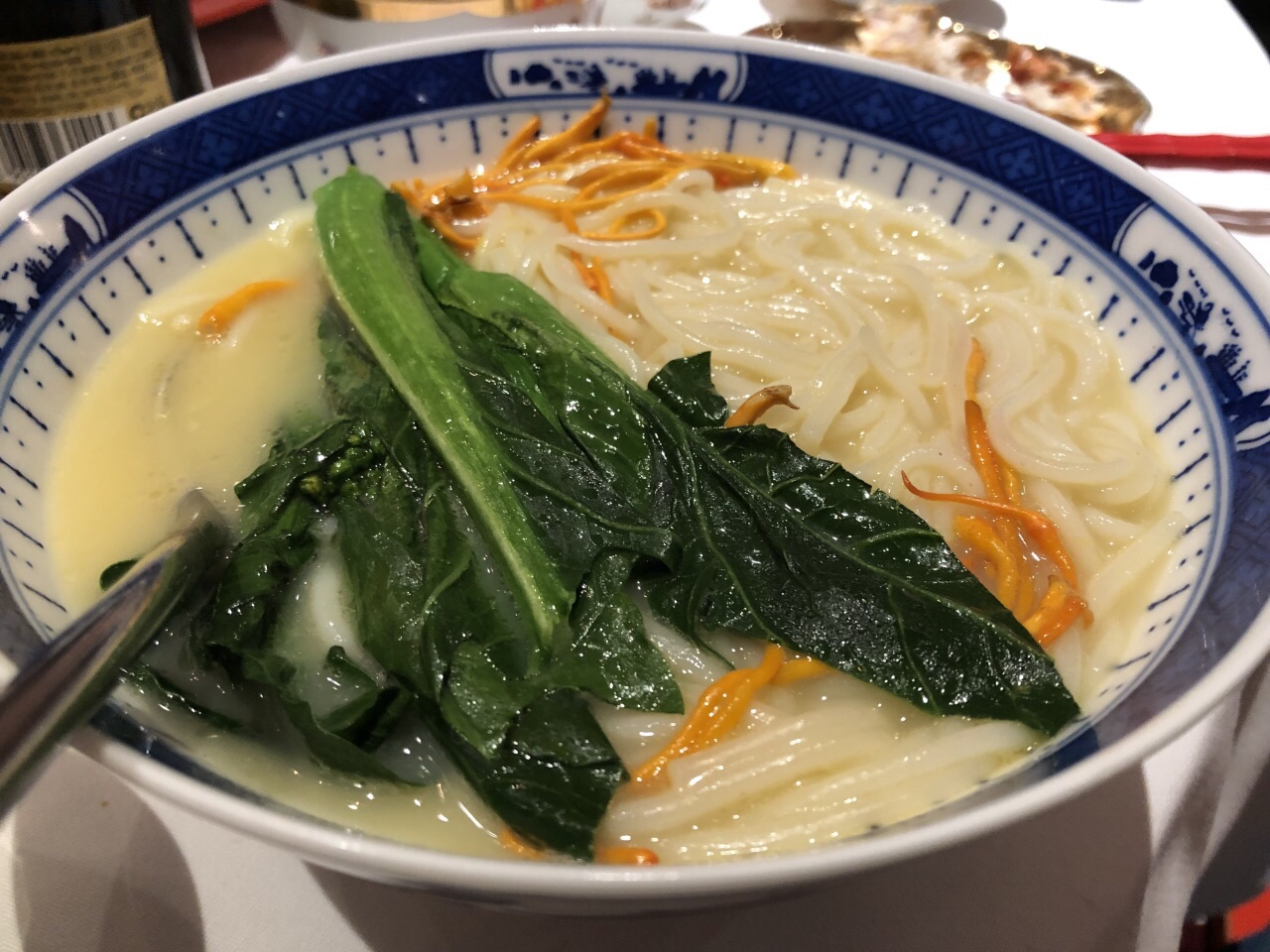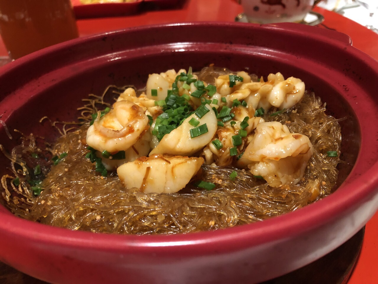 这家第一次来吃,预约到半封闭式的包厢,低消2000~能坐10人~跟大厅融入一体,刚开始吃饭特别热,后来好很多 观光电梯直达6楼 在戴森这条路上 直走就是啦~ 红色的大牌匾很容易辨认~里面也特别喜庆,港味十足~装饰有很多小细节,可惜我没有拍照,座椅很宽~ 菜单无图,但是分类后,每种都挑选了一些~林林总总也不少,可惜盘子都一样 冷菜最喜欢那个大良窝贴奶,炸鲜奶和下面油酥酥的东东 海南鸡三种酱都好吃! 炒辣蟹 298元不便宜,就是有点辣~ 山楂凤梨咕咾肉 看票圈朋友说这个好吃,就点了,酸甜度正好,85有点贵~~ 娘惹酱蒸大鱼头86元的确有东南亚风味,酸甜辣口味 八珍红烧豆腐86元,看名字觉得贵得离谱了,但是加了鱿鱼、虾球等海鲜…… 鱼汤米线 28元,里面还放了虫草花,粗茎的绿叶菜,汤底有点鱼汤的感觉,搭配其他菜吃起来还不错,而且米线劲道还不错 粉丝煲105元,贵在海鲜,超级大的扇贝丁、虾球等 猪肚鸡跟煲宫的不能比,但是当做汤头来喝,很暖身,胡椒可以再多一点点 这边的小瓶的青岛啤酒很好喝,推荐~~