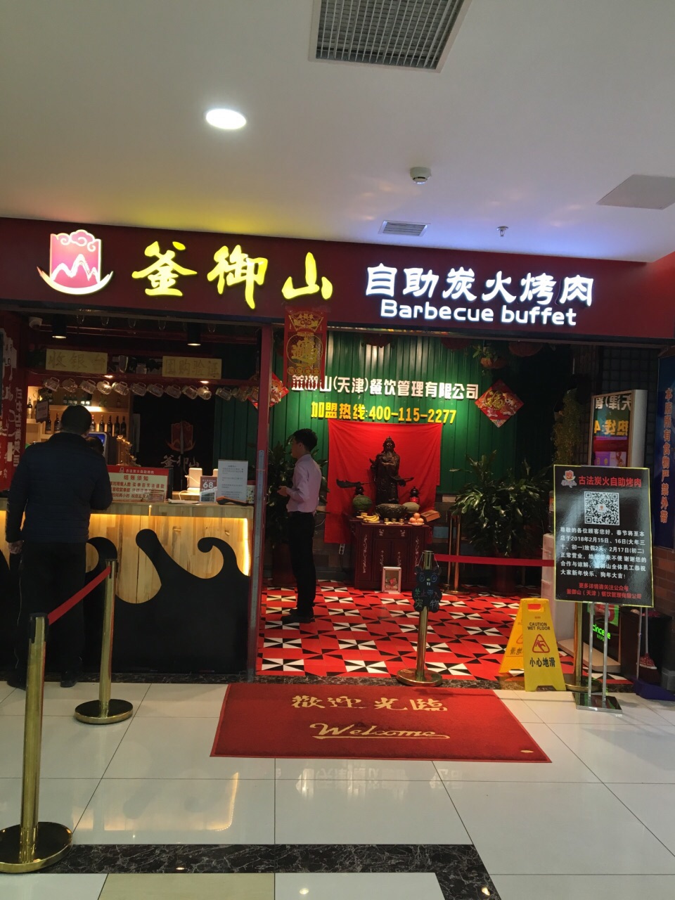 釜御山,烤肉自助,烤肉的种类繁多,性价比很高!各种炸物、凉菜、热菜、水果、小吃、甜品、海鲜、小时候吃的零食,巧克力喷泉一应俱全,原价98元/位,大众点评特惠69.9~每人有10元押金,防止食物浪费~ 【釜御山】
