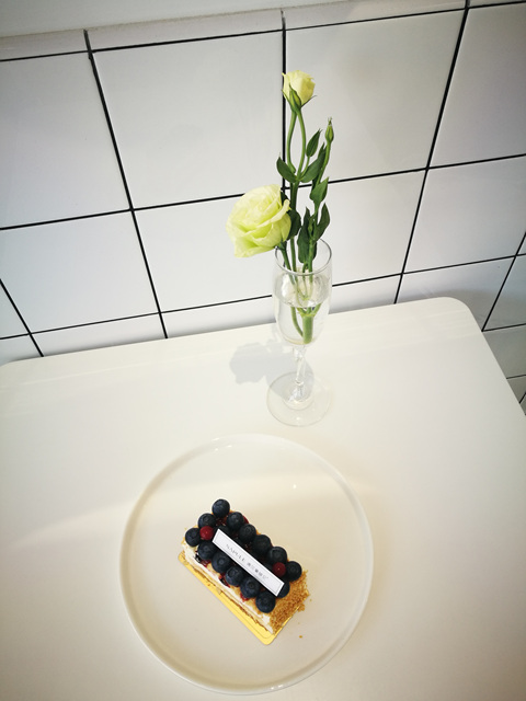 【位置】 明发商业广场,靠中央广场海盗船头部。 地铁3号线明发广场站,路边、商场内也有收费停车场。 【环境】 白色的门面,白色的店堂,灰色的家具,简洁清爽的风格,阳光照进来,非常适合拍照。 超级喜欢他家的桌花,在白色背景下太美了。 空调略不足,冬天有点冷。 【服务】 店员即热情又专业,不会让客人有压迫感,可以在店堂里舒适得休闲,喜欢~ 【食物】 歌剧院.拉斐尔,42元,草莓的品质很好,新鲜味儿足不空心,拿破仑又香又脆,奶油香而不腻,蛋糕略有点干。 拿破仑.蓝莓轻乳,42元,蓝莓很赞,清甜一点儿不酸,蓝莓果酱味道也不错,神奇的是红醋栗也不酸。 热巧克力,35元,香滑浓,好喝。 【评价】 网红甜点店,店面适合凹造型,甜品颜值高,味道好,值得探店。