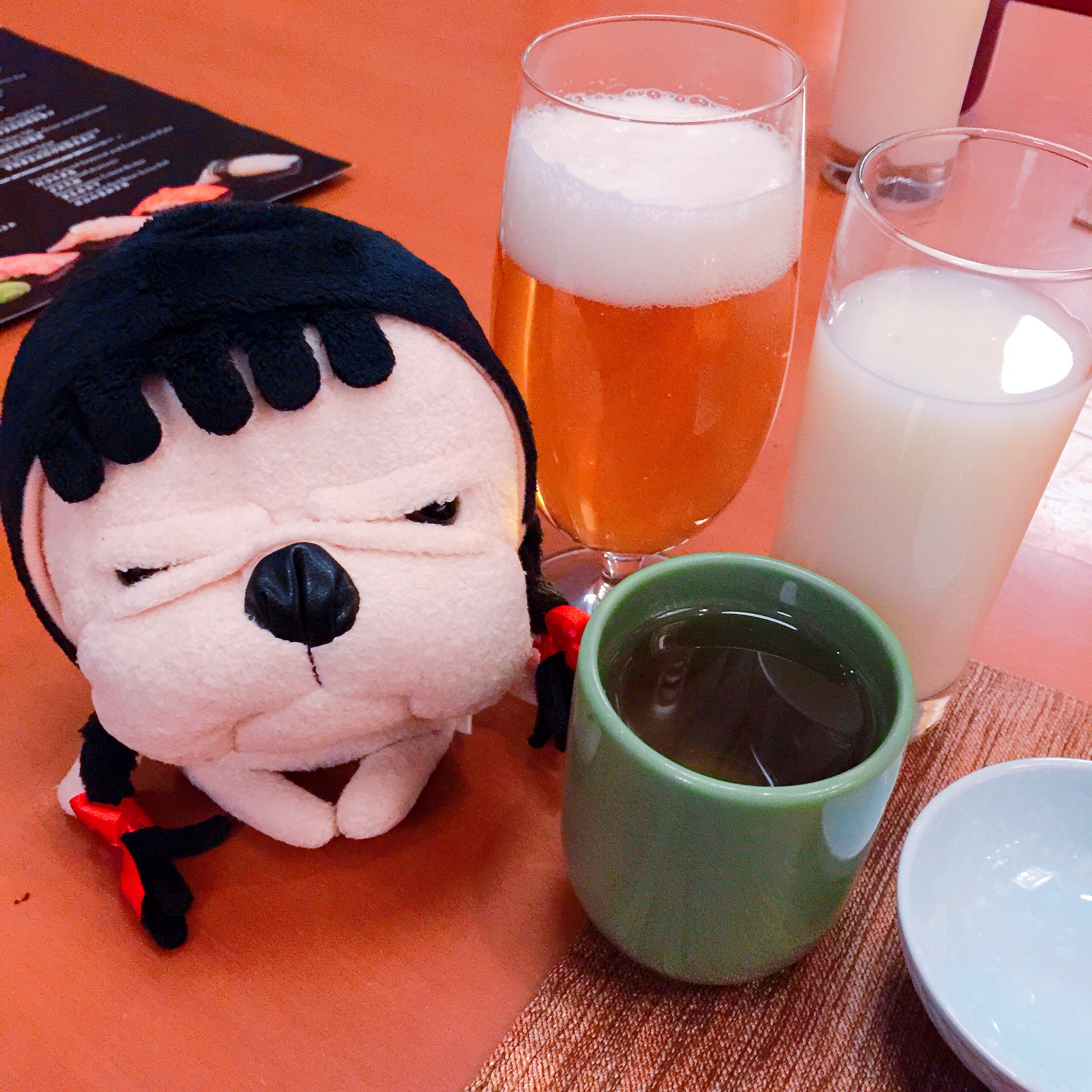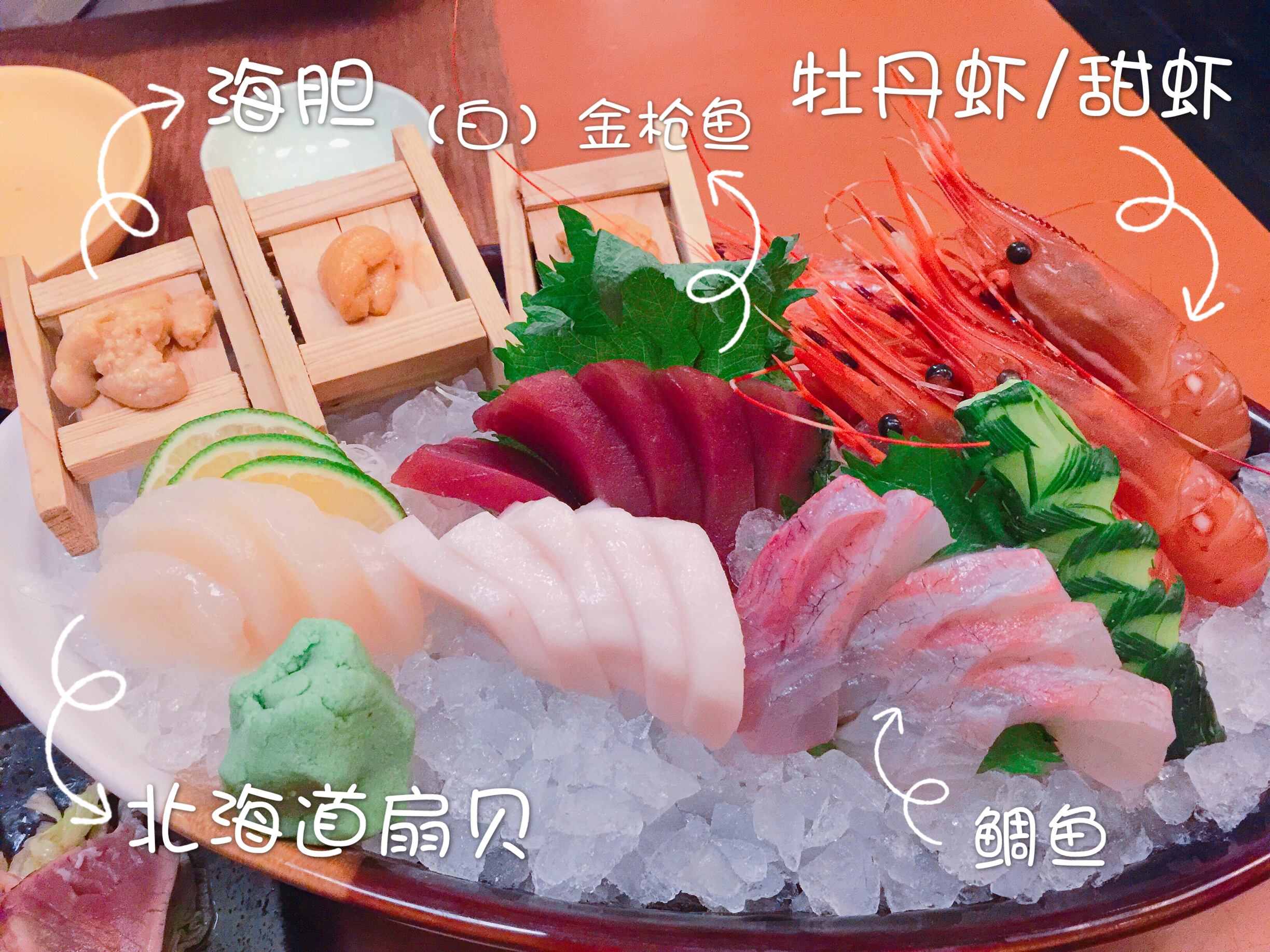今天把之前跨年晚餐上中的大奖给拔草了~四季酒店2F的日料放题餐厅“新太郎”!包含15%服务费的话正常差不多434+/位吧!最近DP上好像还有优惠360+/位净价!我们这餐当然全免费啦!双人晚餐棒棒哒!代(本)言(命)人(狗)友情出演![允悲][允悲]九宫格根本放不下。。。日料放题还是荣新馆性价比好!这里完全因为中奖来吃吃!还不错!服务优于菜品口味! 畅饮选了生啤➕可尔必思! 刺身(图1)点了金枪鱼/白金枪鱼/蛳鱼/鲷鱼/海胆/甜虾/牡丹虾,自由组合成一个大拼盘!最后还是续点了牡丹虾,这里的牡丹虾个头到是很大!而且总体来说不错的,就是海胆稍小了点! 寿司手卷(见下篇)香煎鹅肝和香烤鳗鱼两款,都还不错,鹅肝肥美,入口即化~鳗鱼烤的十分到位,入口满口回香! 前菜金枪鱼色拉配柠檬醋生姜汁(图2),这个完全没有以往吃到的好吃,金枪鱼烤老了。。。味道也不怎么滴;味增青柠日式生牛肉(图3),这个倒是出乎意料的好吃,酸酸的~生牛肉虽然不如以前吃过的全生的牛肉那么嫩,但是嫩烤后的搭配特别酱汁还是很不错的! 烧烤点了不少鱼类等,有烤河鳗(见下篇),现烤的就是美味;味增烤鳕鱼(图4)鱼肉部分还算嫩,但是鱼皮好奇怪有点老还是什么滴扎嘴;烤青花鱼(图5)个人还是蛮爱的口味;蒜香烤大虾(图6)第二个后来又续点的菜品,可想而知的美味程度;铁板烧牛里脊(见下篇)大致7分熟吧,不过肉质本身品质一般所以还是偏老口;法式鹅肝(见下篇)摆盘挺美的~口味偏甜腻;铁板扇贝(见下篇)嫩香,败笔有点油。。。 主食叉烧拉面(见下篇)今晚全场最不好吃。。。完全为了暖胃点的。。。 甜品水果拼盘➕冰激凌(最刺激的是今天居然吃到wasabi和生姜口味的冰激凌!奇葩还不赖!)➕黑芝麻布丁(so mini)➕绿茶红豆卷(蛋糕卷部分太干,甜品蛋糕部分还是四季酒店楼下的咖啡厅的出品更胜一筹)➕日式大福(喜欢的糯米团子,一口气灭了三个。。。一点也不甜腻)