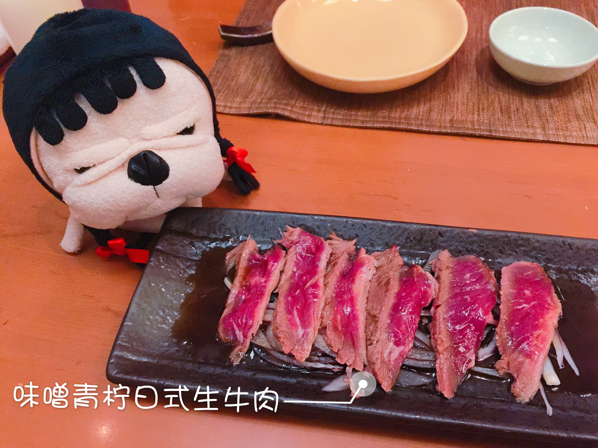 ...的好吃,酸酸的~生牛肉虽然不如以前吃过的全生的牛肉那么嫩,但是嫩烤后的搭配特别酱汁还是很不错的