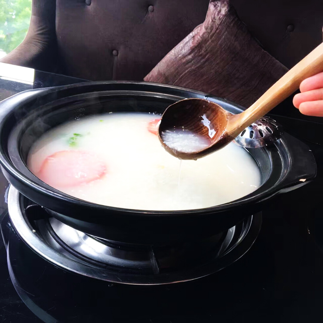 瑶柱打底的海鲜粥火锅,粥熬成米浆状,鲜味很足,各式新鲜海鲜,又再度增加彼此鲜味