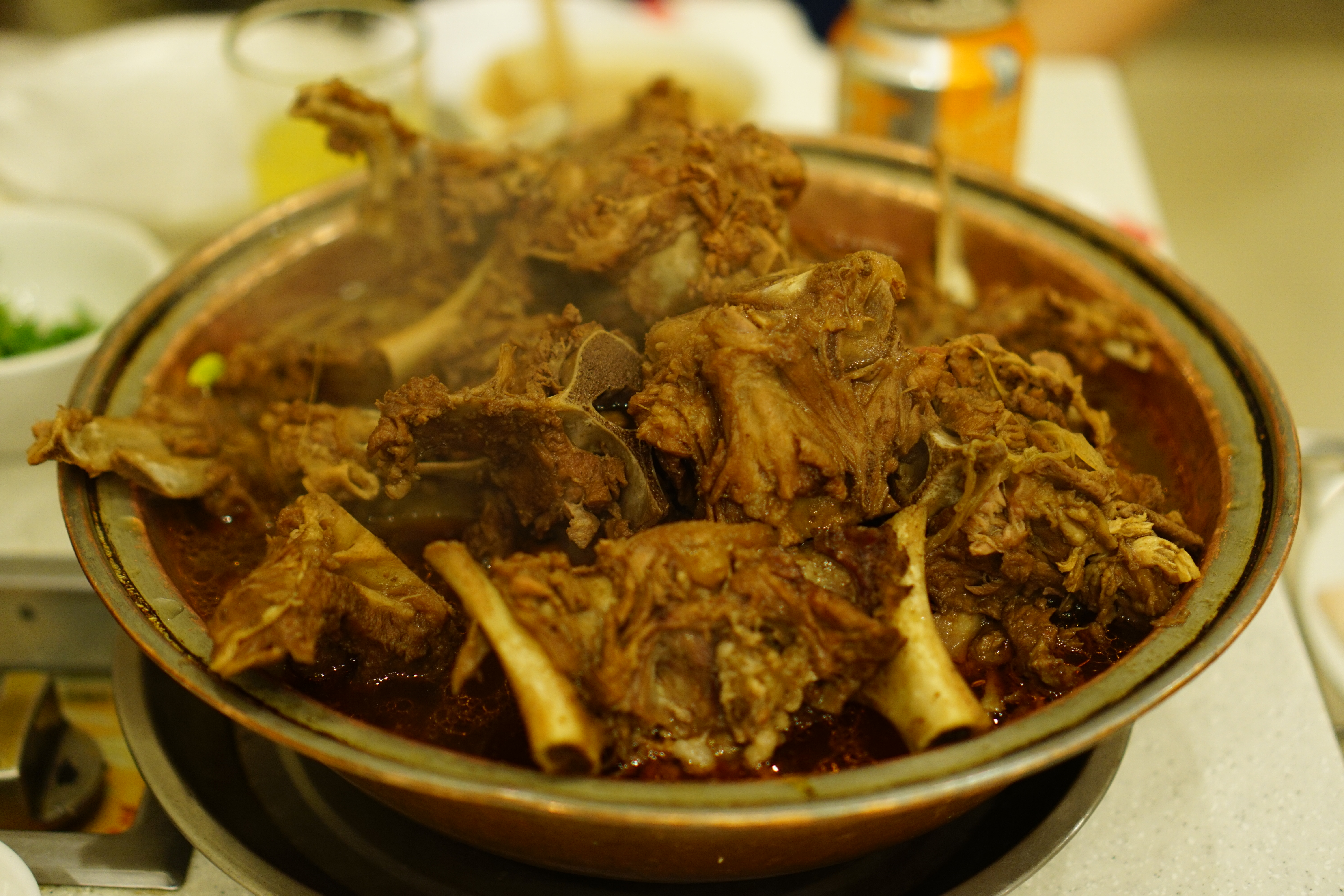 看到这个很有时代感的铜锅,就立即勾起我的食欲。一口是香喷喷的羊羯子,一口是羊肉蒸饺。本地人带着去的