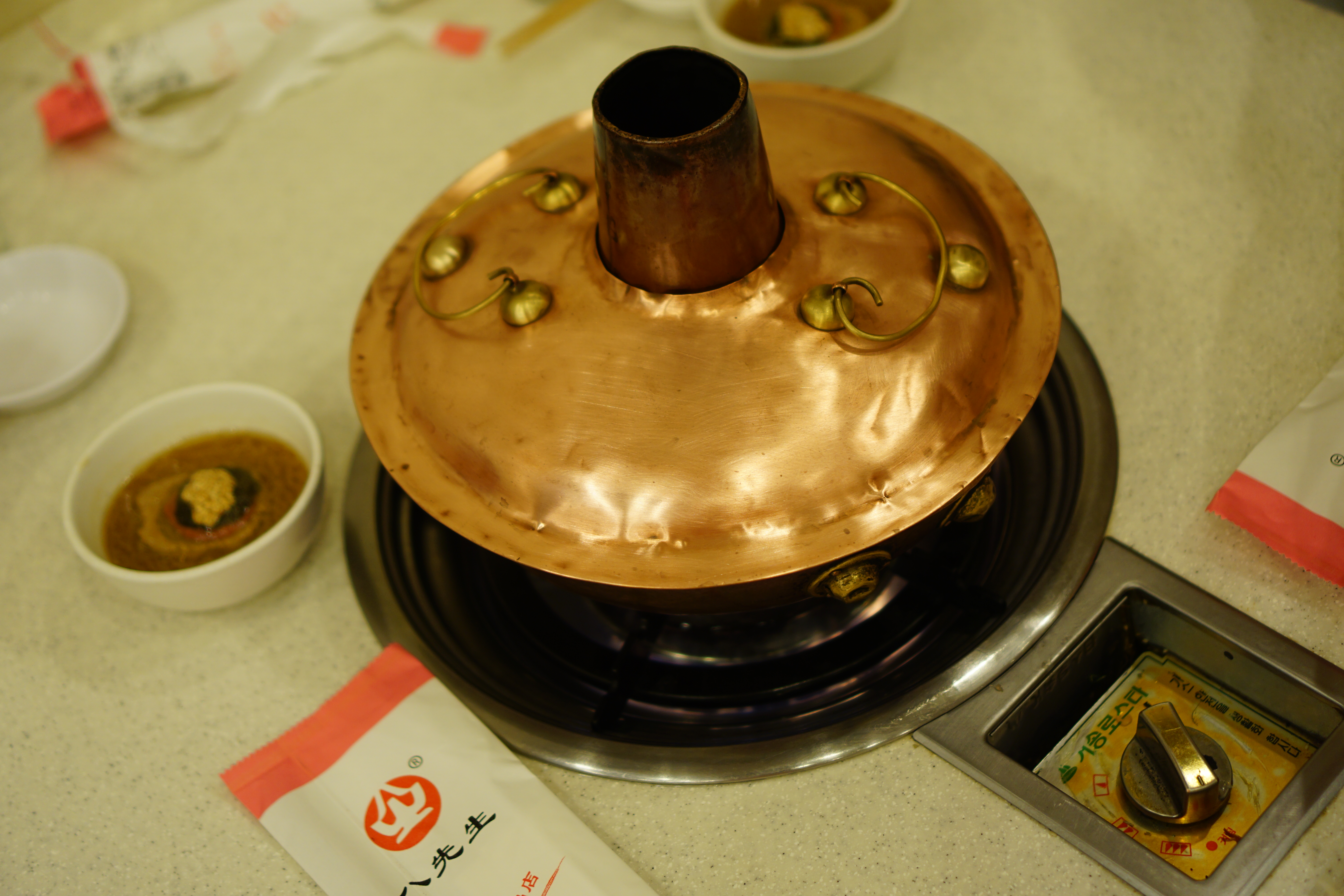 本地人带着去的。虽然店面很不起眼,但绝对是涮肉店中的老字号,尤其羊羯子的味道真的很好很好。看到这个很有时代感的铜锅,就立即勾起我的食欲。 室外夏日炎炎,室内凉风阵阵,来一口久违的北冰洋橙汁,爽!一口是香喷喷的羊羯子,一口是羊肉蒸饺。