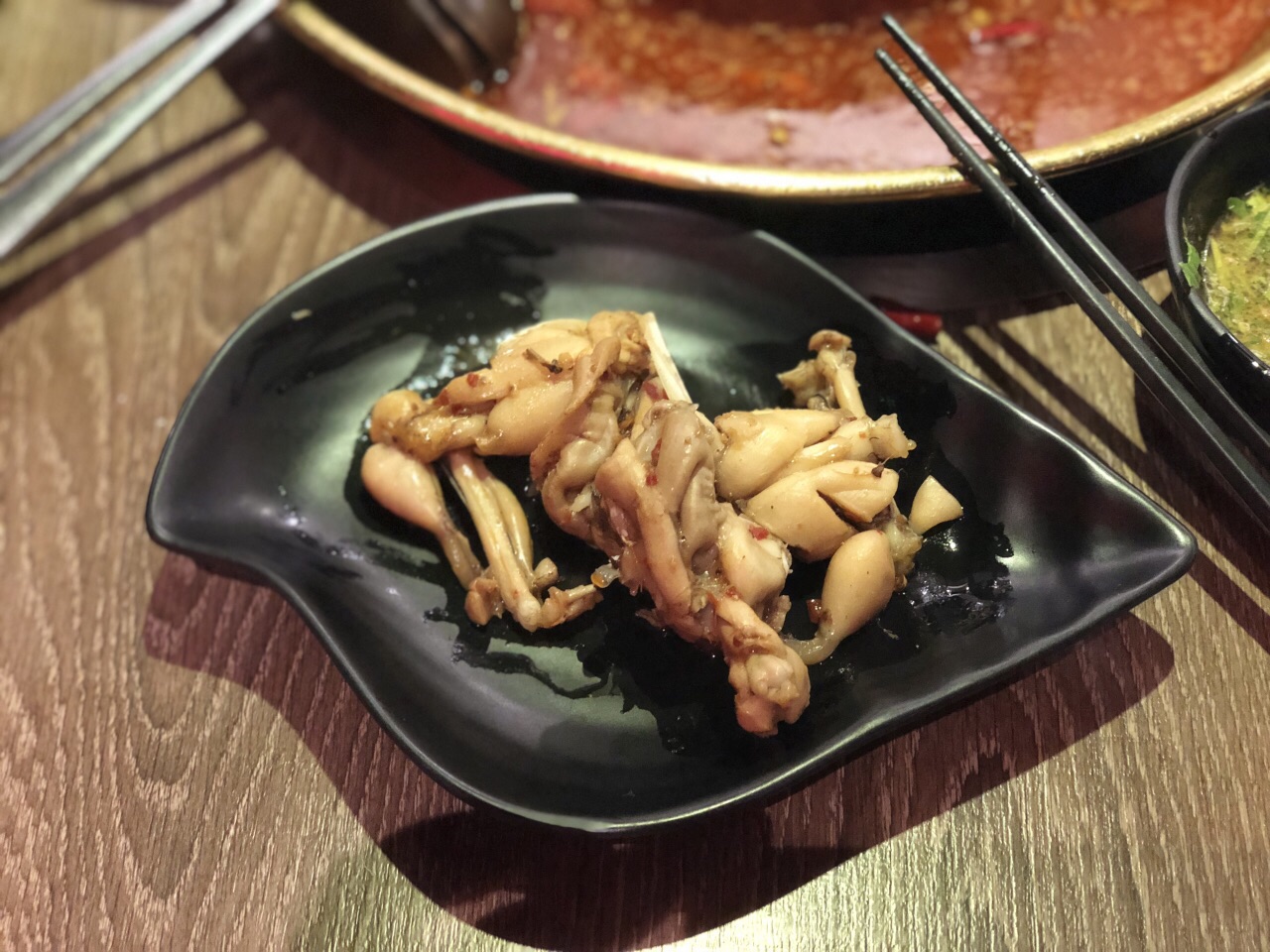 在宝山万达开了蛮久的一家牛蛙主题的火锅店,记得当初第一见到这个品牌的时候是在五角场,周边的火锅店生意都不错,但是唯独这家生意并不怎么好。 在万达闲来无事正巧看到这家有活动,16点之前下单可以有69折优惠,网友们都是这么写的,商家的促销活动也是这么写的,但是结账的时候商家告知从2月的折扣优惠就变成了79折,这点让自己很不满意,因为dp上面看到的优惠信息依然是69折,没有更新过。 【黄喉】厚切,口感适中,无功过。 【鸭血】滑嫩,味美,不错,切片形状是圆的,要比方的好看点。 【芝士年糕】不知道是不是年糕品牌的关系,这边的年糕非常非常非常软糯,一口下去芝士便会跑出来。 【牛蛙】个头并不怎么大,作为这边的招牌特色,略有逊色,肉质不错,但是黑色的筋遍布在牛蛙身上,视觉效果看上去并不怎么好。 【窝蛋牛肉】牛肉肉质非常的嫩,量不小,好评。 这边所有的菜品都可以半份半份点单,自助酱料没有稀释过,有自助饮料和冰淇淋,这边没有纸巾提供,2元一包,质量一般,量很大。店员服务态度尚可,就是见不太到人。