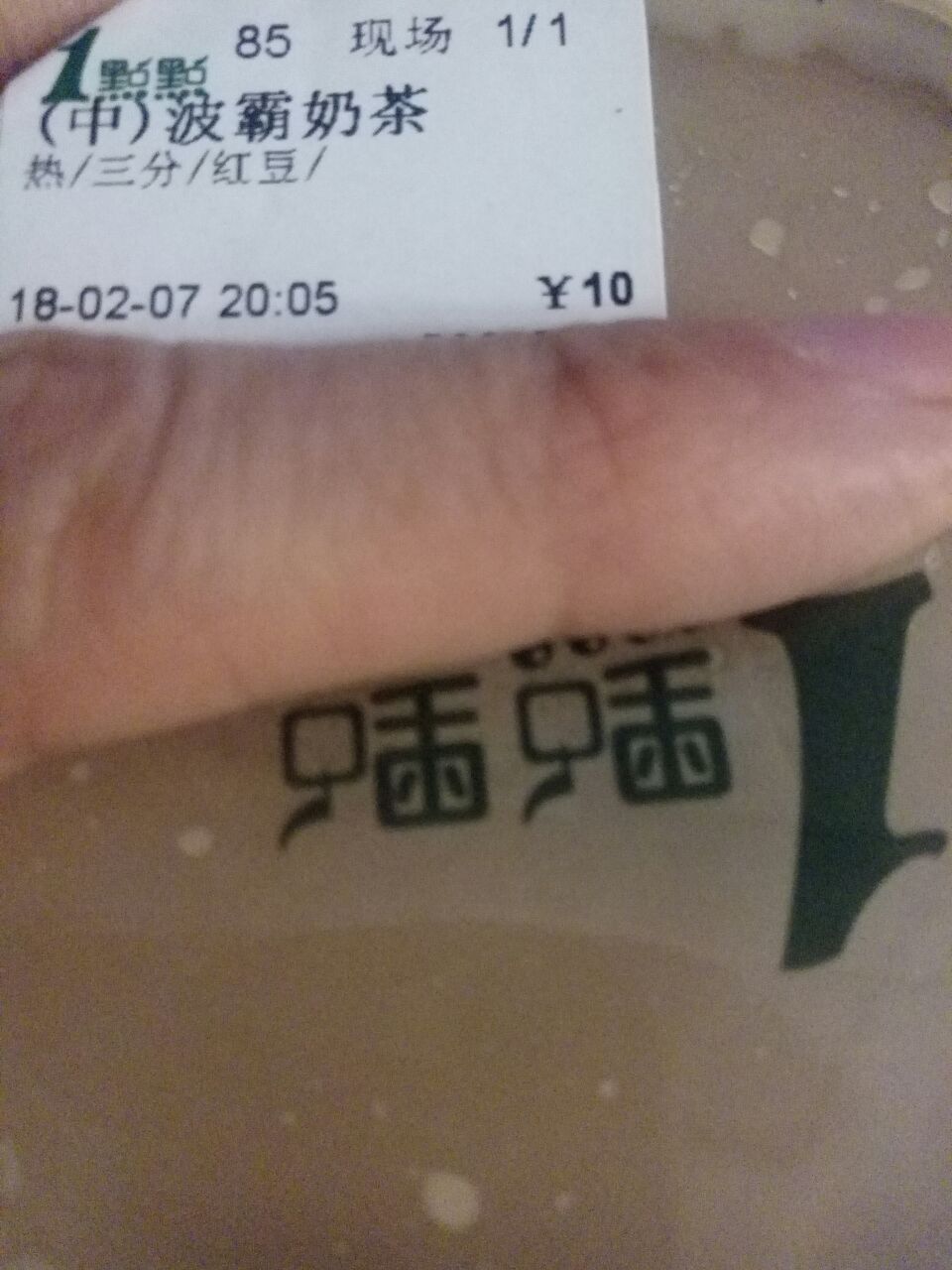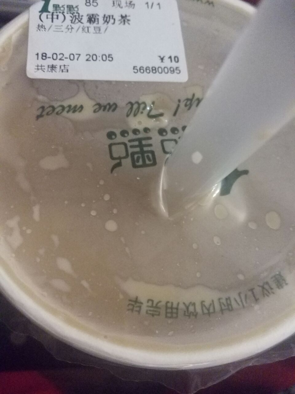 网友2018-02-091点点,这次经过共康店居然发现前面什么人,开心开心,果断去买一杯饮料1点点,这次经过共康店居然发现前面什么人,开心开心,果断去买一杯饮料。 虽然手上还有没有喝完的50岚,反正√奶茶从来不嫌弃多只嫌弃太少。 要了中杯波霸奶茶再加红豆热杯,大冬天暖手很爽。