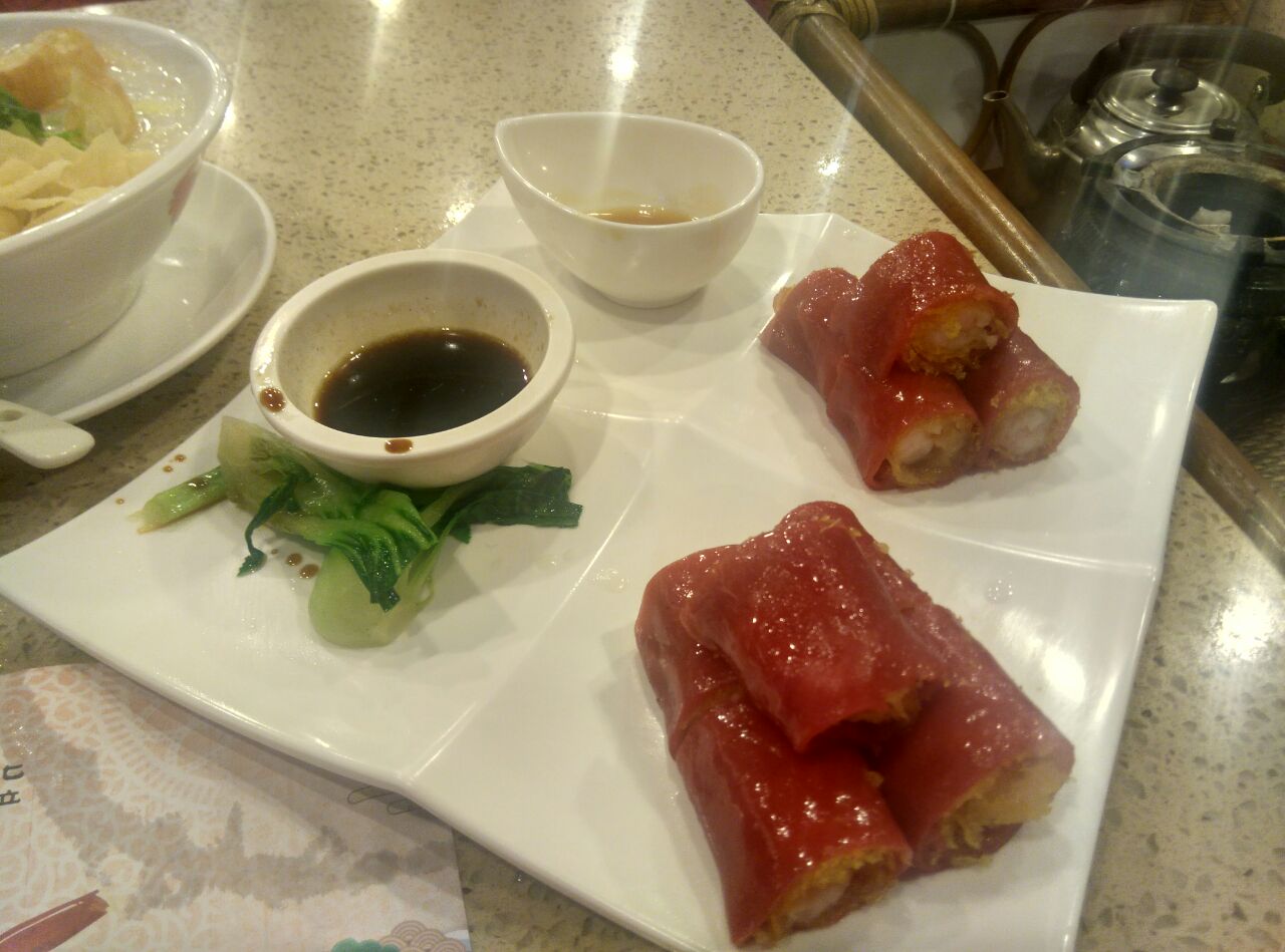 点了艇仔粥、红米肠、叉烧包,色香味俱佳,食材、制作都精质上乘,是品广州当地美食的好去处有老字号店的风范,喝茶较为讲究,我点的罗汉果茶甜苦清雅,服务员服务也贴心。。点了艇仔粥、红米肠、叉烧包,色香味俱佳,食材、制作都精质上乘,是品广州当地美食的好去处。