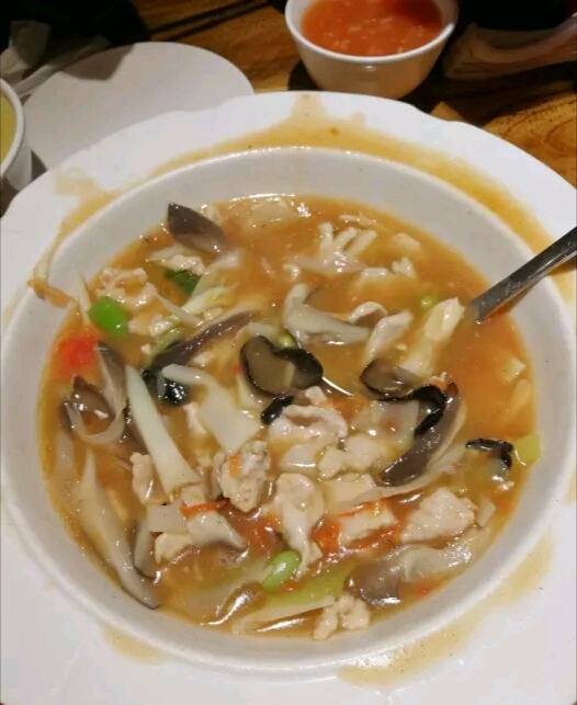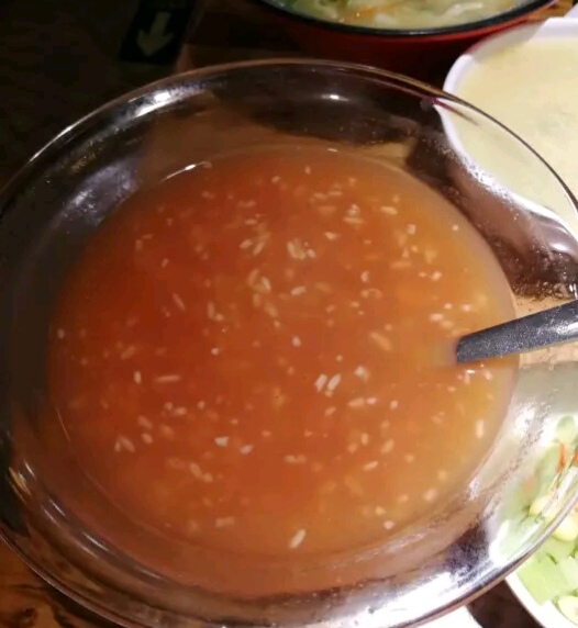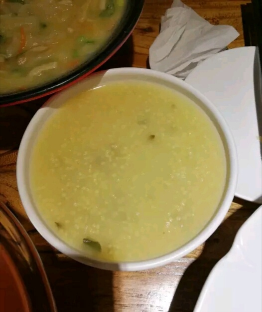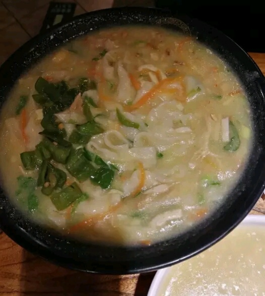...也好大一份两人吃都不用再点其它的了,米酒山楂汤开胃消食,晚饭还有免费的小米粥可以自取,特别划算菜谱很精简,上菜速度很快,吃饭的顾客不少,基本人手一碗糊涂面。连汤肉片也好大一份两人吃都不用再点其它的了,米酒山楂汤开胃消食,晚饭还有免费的小米粥可以自取,特别划算。