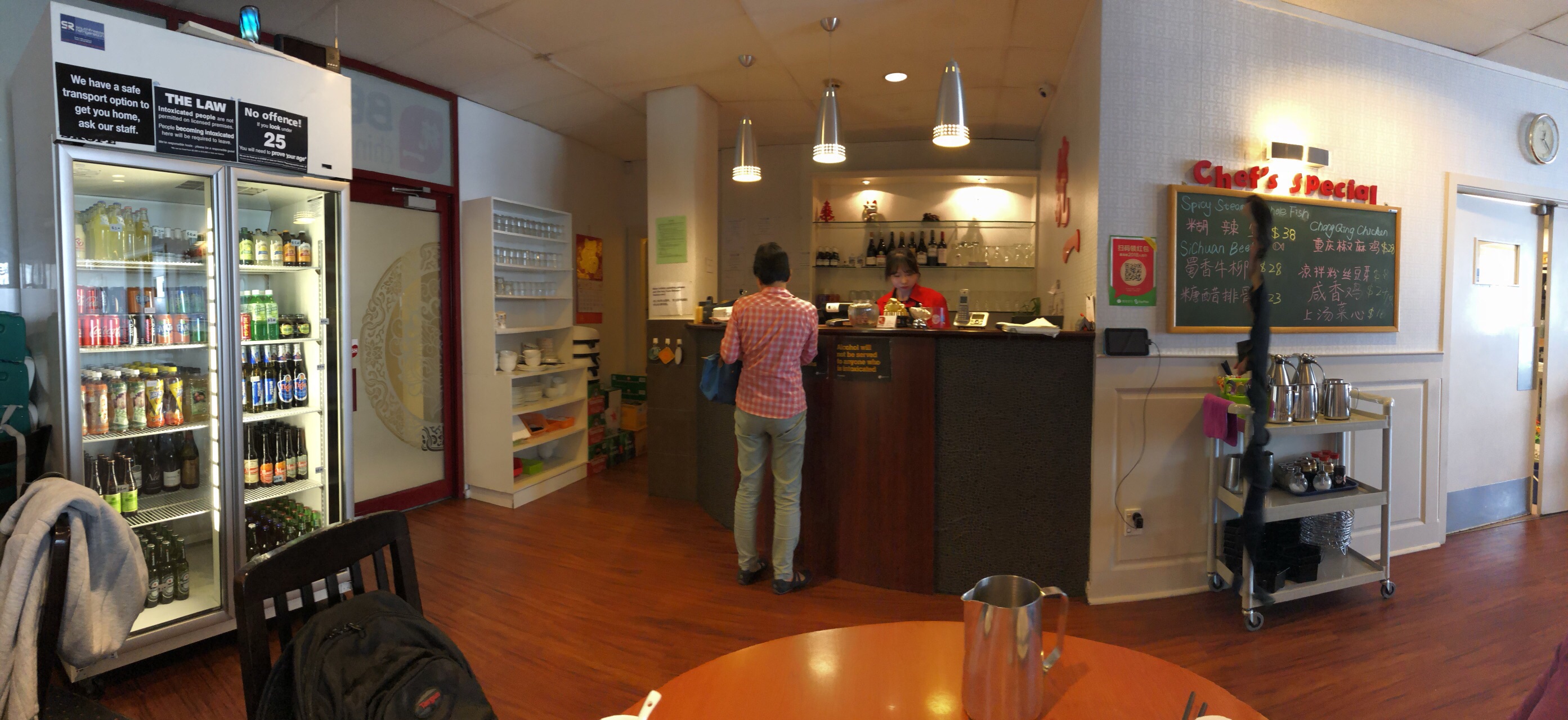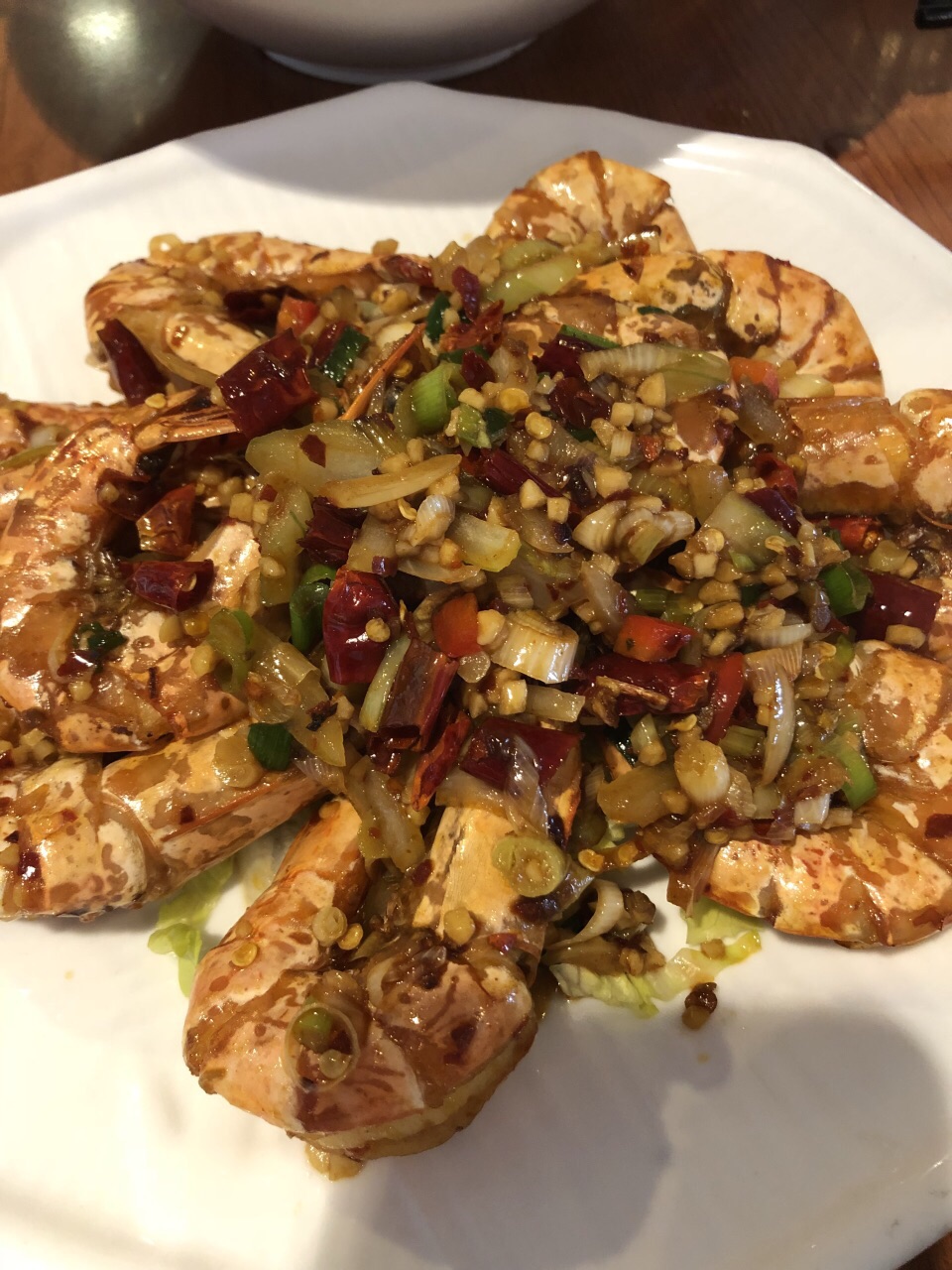 在当地算是比较有名的中餐店了。虽然不沿着马路但有清楚的指示牌,路边可停车,但只能60分钟,店铺后面也可停。店堂不太大,所以人多了可能要排队。椒盐大虾个头个个都很大,新鲜Q弹,虽油炸过但也不油腻。牛肉河粉量超多,里面的牛肉大块大块很实在,炒青菜也很新弹。吃完还能微信领红包然后微商买单,人均130多人民币。