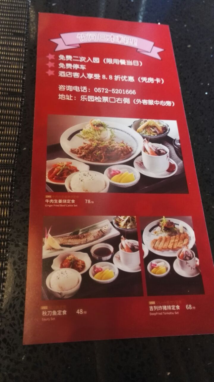 到达HelloKitty乐园之前就查好了,有日料店,于是到达后就去了,经过外面时就看到有小朋友玩得地方,孩子就跑过去玩了,餐厅还不错,我们到时人不多,不过上餐的速度有点慢,可能是一份份做的!味道还可以吧。不过这里用餐后可以领停车券,蛮好!