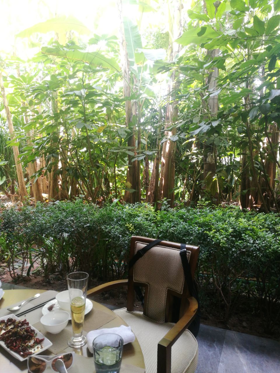 酒店的菜品特点:口味中和、食材考究、装盘精细。 中餐厅与大堂同层,今天阳光正好适合坐户外区域,特地选择了户外的区域,左右环绕的是热带树林,就像在树林中用餐,这时候一定要来杯啤酒,惬意啊! 服务还是比较专业的。