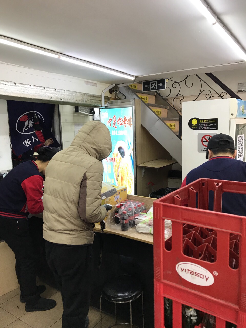 中午饭点经过,见人少便进去。 前几年是非常出名的网红店,牛蛙面差不多可算上海滩前列的几名中。 面量大,饭量小的女生,两个人点上一碗应该刚好。一个人吃,有点儿多。 现场堂吃感觉环境一般,因为店里要不断先照顾进来外卖单子。堂吃总要等上一会。 有二层店面。一层显然是向下挖出的。坐在靠街窗旁吃,看着街上人车在自己眼前经过,也蛮有意思。