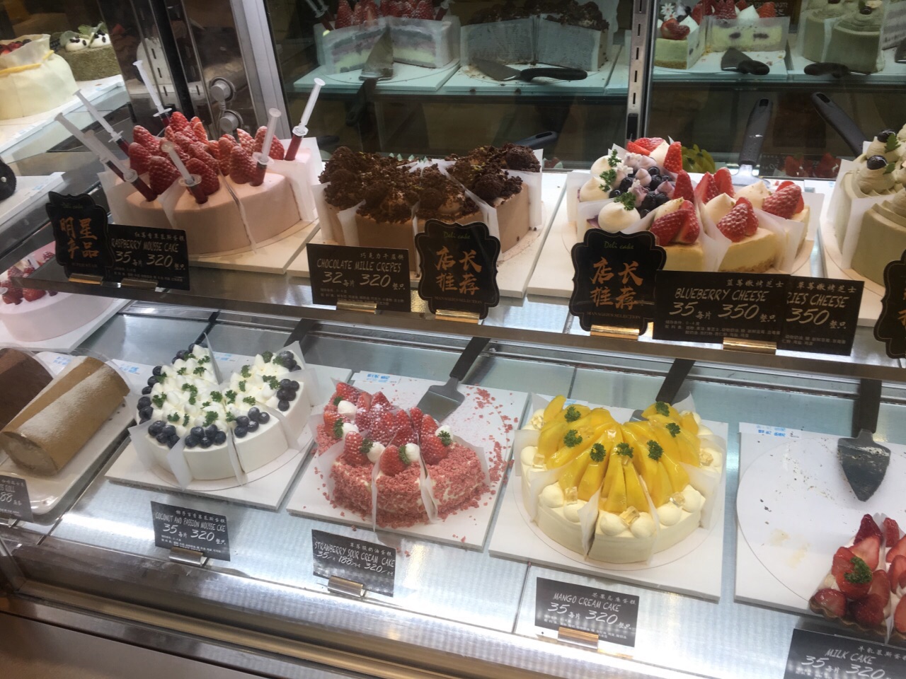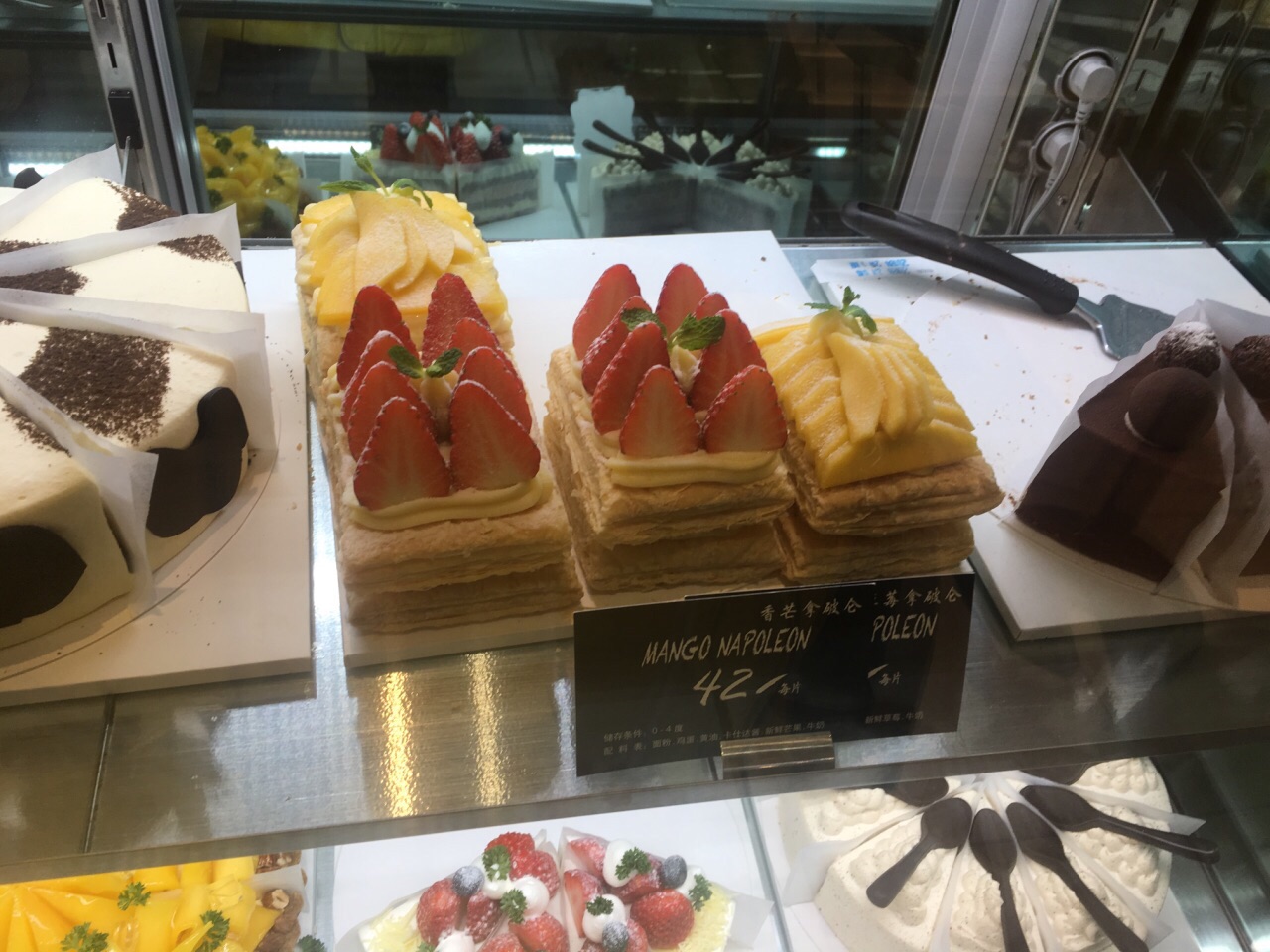 如果没有理解错误的话 这家Deli Cake和淮海路上大上海时代广场的Deli & Leisure应该是一家人 毕竟最出名的菜色都是长的一模一样的“芒果拿破仑” 不同的是这家只外卖蛋糕和茶饮 那家还有餐饮。 买了应季的草莓拿破仑,味道和芒果拿破仑差不多,好吃又好看,包装也不错~~