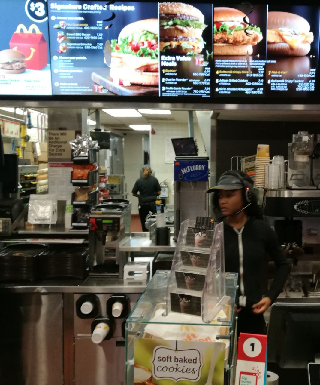 因为这个航站楼比较小,而且大多是美国国内航班,所以在这个餐馆看不到在其他航站楼内的麦当劳需要排...