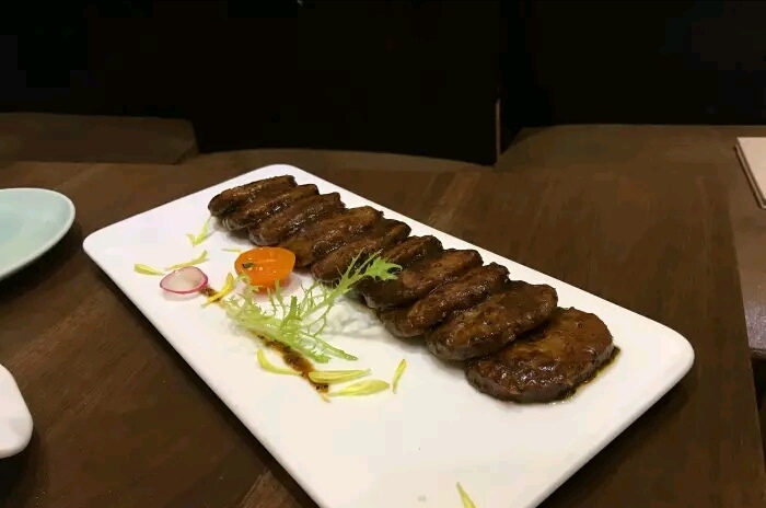 白玉芳心是餐厅自制的酸奶冻,切块并佐以草莓酱,红豆,红白相衬,很是艳丽;口感方面有果冻的爽滑和老酸奶的醇香; 旭日东升主材素鱼,口味酱香微咸。 黑椒牛排可以说是最以假乱真的素食菜品了。用压制紧实的素牛扒,佐以煎制牛排常用的黑胡椒,入口味道浑厚,饱足感十足。 环境优雅安静,包间不多,但卡座沙发、餐桌质感很赞,家庭聚餐和朋友聚会,不失格调。