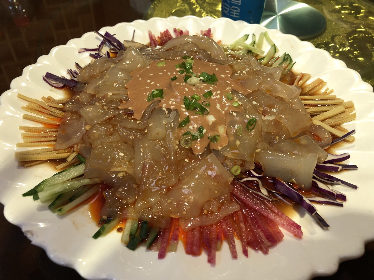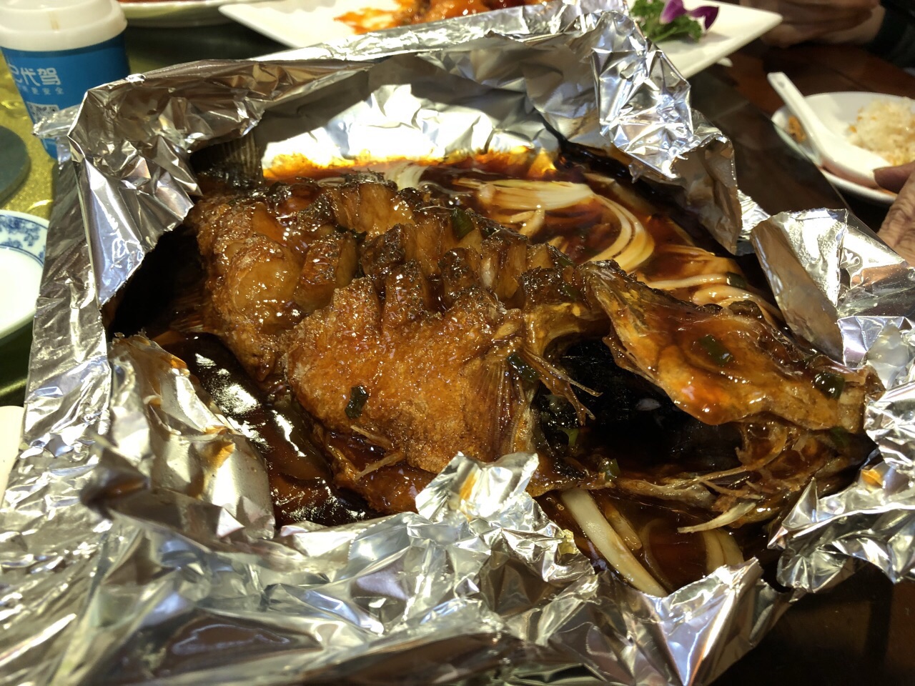 一只烤鸭、手抓虾仁、铁板锡纸鲈鱼非常赞,鸭饼两种,娃超喜欢类似烧饼的鸭饼,此鸭饼酥脆鲜香,咬开个小口便可将鸭肉塞入,吃上一口真是美味无比。不但菜品味道上佳,服务员的服务特别到位,尤其有一位男服务员,那态度,绝对让你宾至如归!