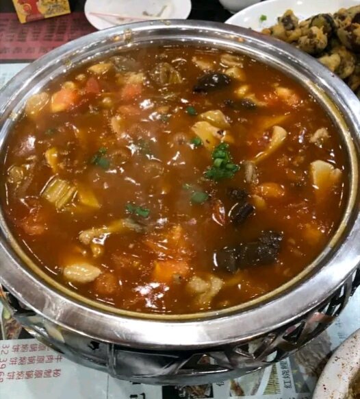郑州老字号,之前对郑州的印象只有胡辣汤 烩面,焖面吃过很多次。 坛子肉饼:也就是服务员说的招牌大肉,我理解的“坛子肉饼”就是坛肉焖饼。小份大份区别主要是肉多少。口感和味道近似炒饼,饼中微浸了坛肉汁,饼却不面,也不像炒饼那么油,重口党表示加上陈醋辣椒油简直美味。 红豆粥:不是赤小豆熬制,而是纯红豆,没有添加其他辅料。粥浓香且甜,甜汤部分呈糊状,很补。