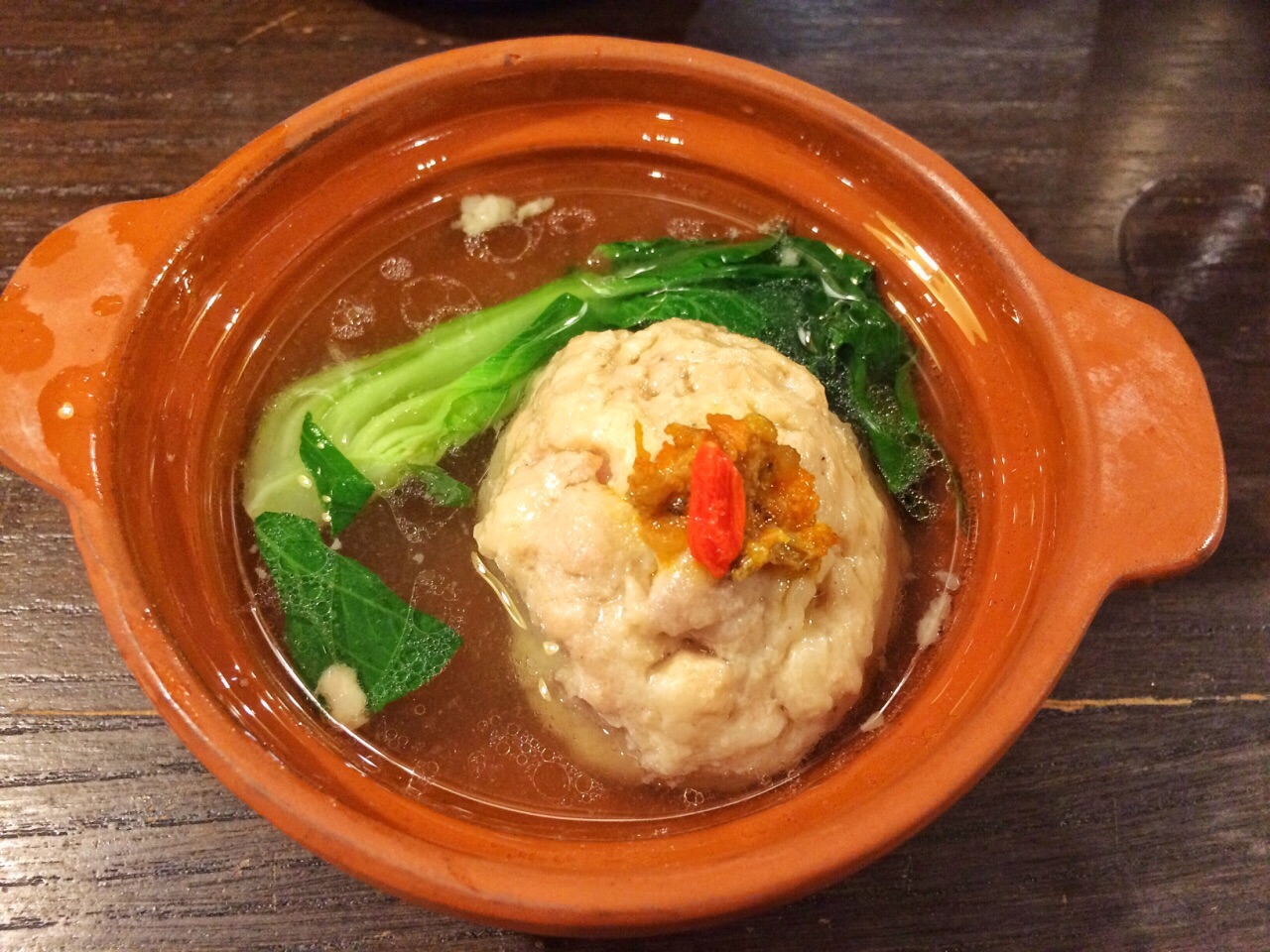 接连的本帮菜团购让我伤了心,这次友人相约美味斋来单点几道,抱着“大概会比上次强”的心态,工作日又出来耍了。 美味斋位于菜市口附近的翔达大厦内,上次我还奇怪这店怎么会开在这儿,原来美味斋和晋阳饭庄、致美斋等老字号都属于翔达公司。 工作日十一点半到店,等了一两桌就入座了,都重开这么长时间了还是这么多人。店里中年人居多,像我们这样的小年轻算是少数了。 服务和菜单都是走的快餐的形式,毋需多说。 蟹粉狮子头 肥肉和瘦肉都是切出来的,肥肉偏多,调味不重。 东坡肉 东坡肉中,类似酱豆腐的甜香味很重,配上肥肉感觉有一点腻。 响油鳝糊 并没有响,鳝鱼有一点点腥味,芡也蛮厚的,吃着还可以。 五香大排 五香的味比较淡,吃起来更像是一道凉菜。 八宝辣酱 相比前两天吃的要强的多,辣酱的辣体现在后劲上,甜味和咸味都偏重。配料中包含虾仁、笋、豌豆、花生米、鸡肉、豆腐干和鸭胗,算是很正统了,这道菜是今天的MVP。 生煎包 煎的不是褶而是底,是较为传统的手法。汤汁丰富,呲的很远,整体味道偏甜。 相比上次三人吃的美味斋团购,这次显然要强得多,所以给4星。