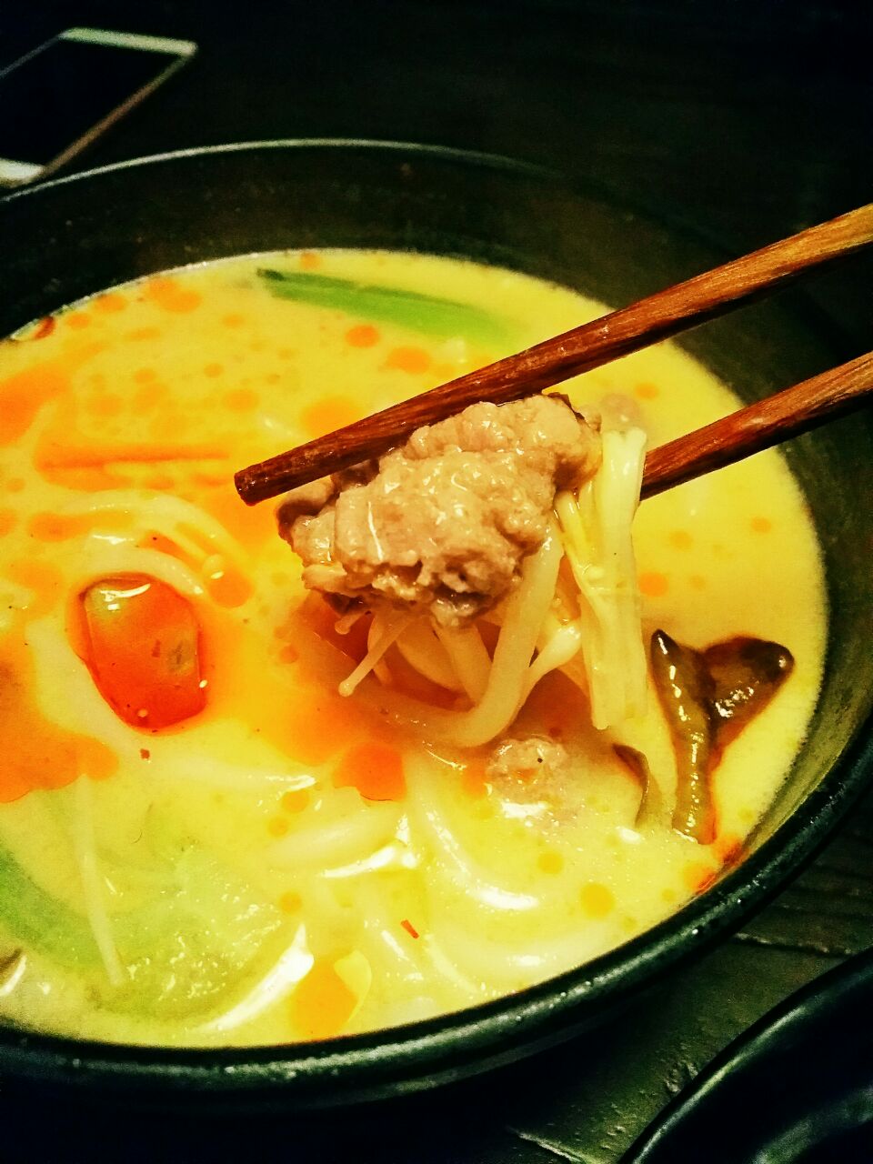 ₍˄·͈༝·͈˄₎ฅ˒˒✨阿歹小盆友✨ 一顿着急忙慌的垫肚餐~ 都说他家学热啊,我是掰扯不清楚,反正我点的这几样都十分好吃啦[好爱哦][好爱哦] <芝士榴莲饼>就像一个小披萨,料还挺足,甜甜的臭臭的,还有一层椰蓉~ <酸汤肥牛面>应该是这个名字吧,香茅跟椰奶的味道好足呢!有点冬阴功汤的感觉,酸辣味比较有后劲,喝完整个人都暖了~ <一口豆腐>炸的嫩豆腐,蘸上秘制蘸料,反正也莫名好吃,可能跟饿有关~