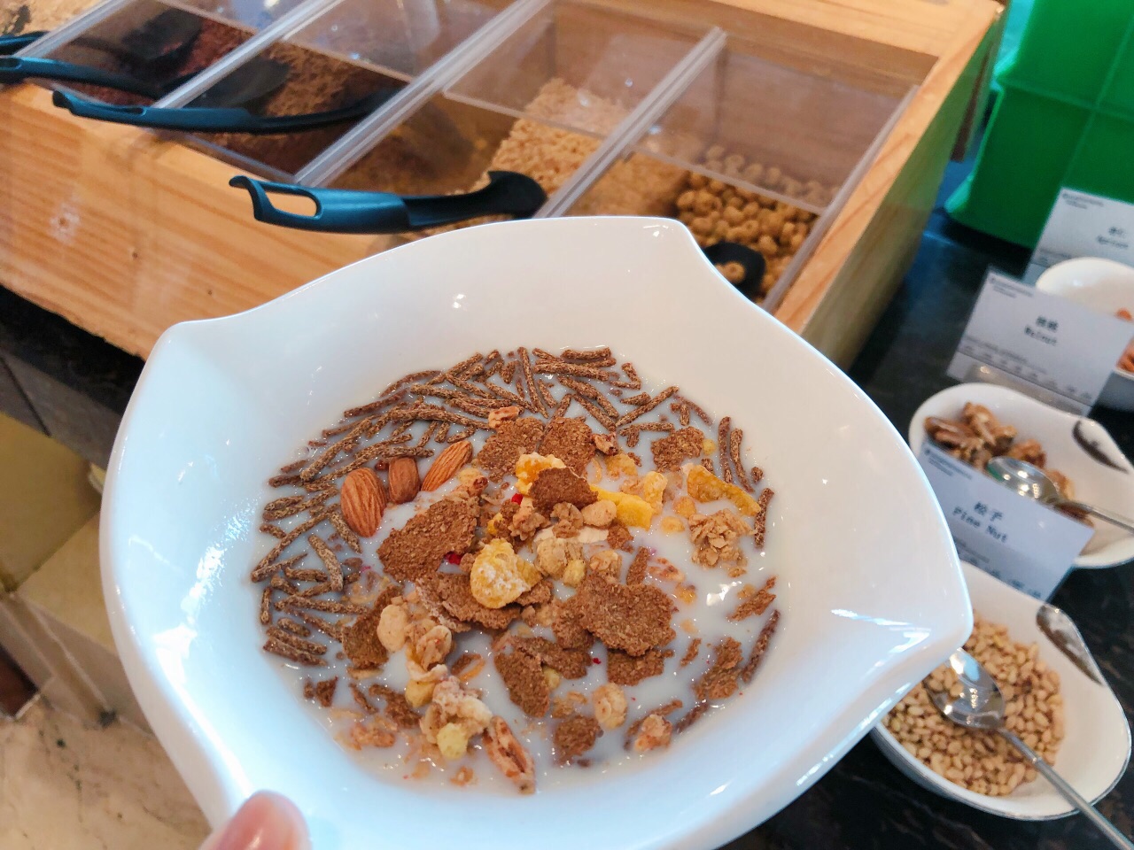 来吃早餐的,品种基本都能满足,中西式之外还有日式的一部分。它家的面食做的都还可以,就是喜欢吃沙拉,为了补充维生素和膳食纤维,9点到的,基本就没有生菜了,其他东西都给续唯独菜叶子不再补,可能是吃得少吧哈哈。 还可以点面吃,基本老少皆宜。
