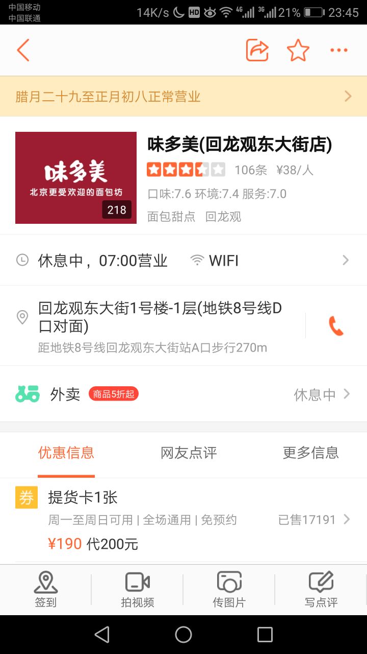 不知道是店家故意欺骗还是大众点评发布虚假消息,初二19:00到店,黑着灯,早关门了。我知道过年期间,店家不一定会正常营业,去之前特意在点评上查了,说是正常营业,还写上了节日期间每天的营业时间,确定营业,才去的,结果门上贴条说早下班。把我们骗去对店家自己有什么好处?!