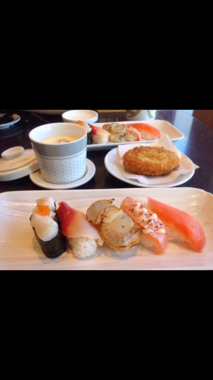 還可以選一個小吃和熱食。來這吃下午茶,有5個下午茶餐選擇,算是滿多選擇的,性價比滿高來這吃下午茶,有5個下午茶餐選擇,算是滿多選擇的,性價比滿高。 這次選了壽司的下午茶套餐,有三文魚,火炙三文魚,帶子,北寄貝,元貝。 還可以選一個小吃和熱食。