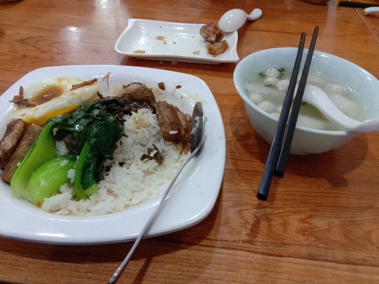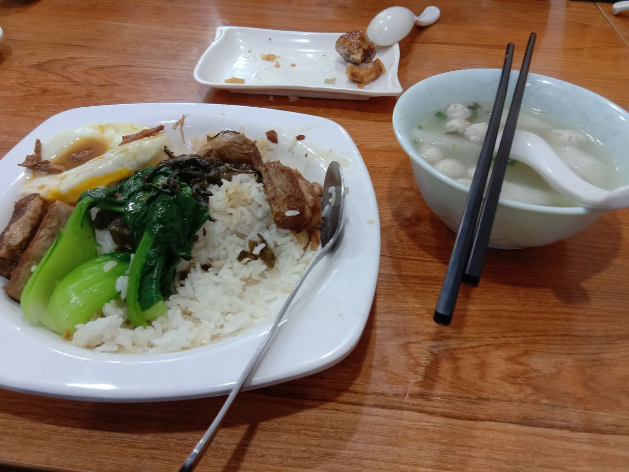 ...12块,一碗饭两条白菜三片猪肉加上一点咸菜就是扣肉饭18块,比买饭盒贵多了,打包还要加一块,差贵!一碗萝卜汤几颗小肉丸就12块,一碗饭两条白菜三片猪肉加上一点咸菜就是扣肉饭18块,比买饭盒贵多了,打包还要加一块,差!