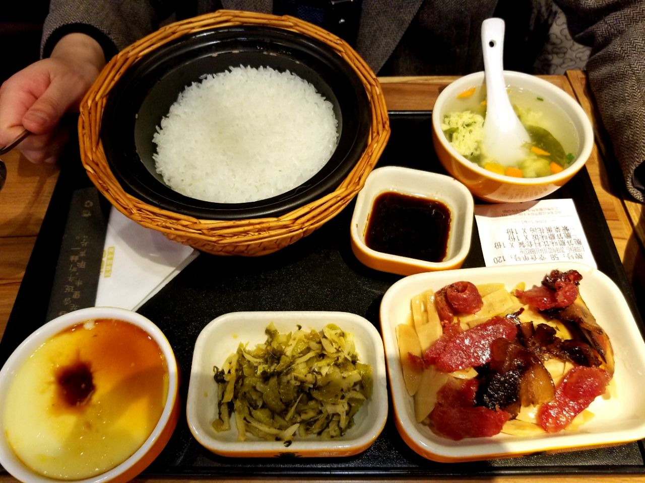 一点点笋像袋装的口感,一只炖蛋一只大众汤,额……感觉一个正常男生还是吃不饱的,25好像比较合理...