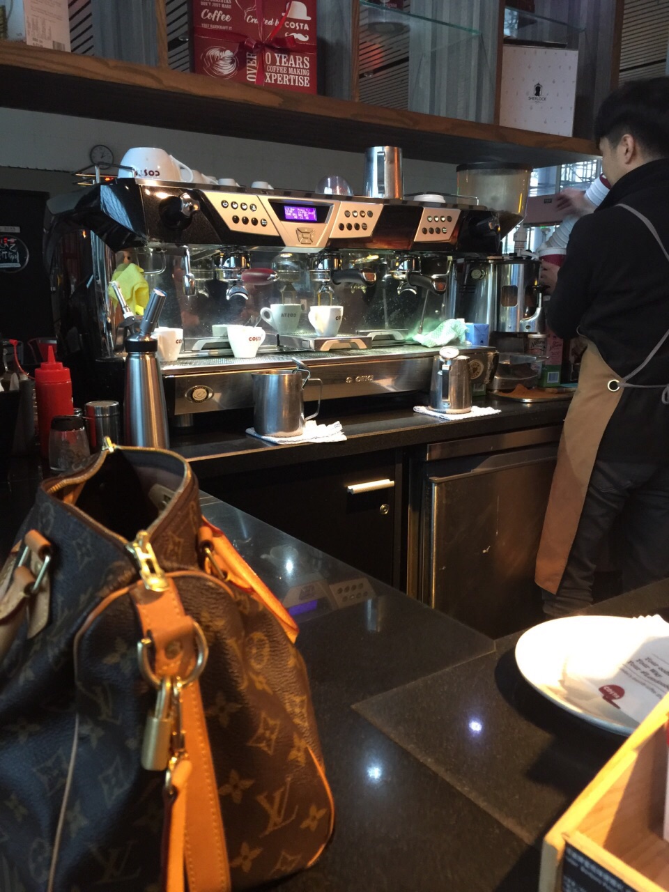 一杯续命的咖啡,大吃大喝4天都快不认识自己了,上班赶紧减肥,断食不解释,Costa 在高铁进站处,人真不少,还有蛋糕点心,出杯速度动作有点快但是味道很一般,焦糖拿铁淡出个来,不知道其他品种味道如何。