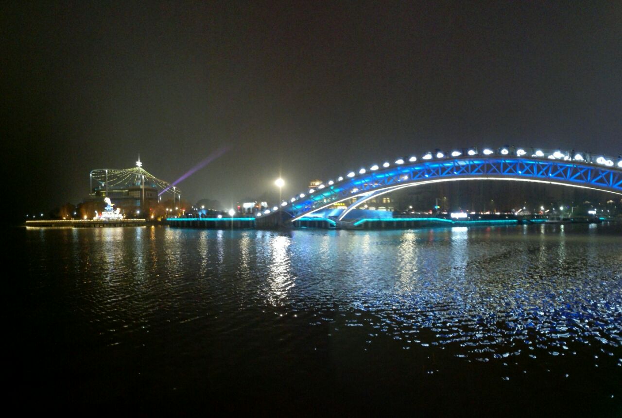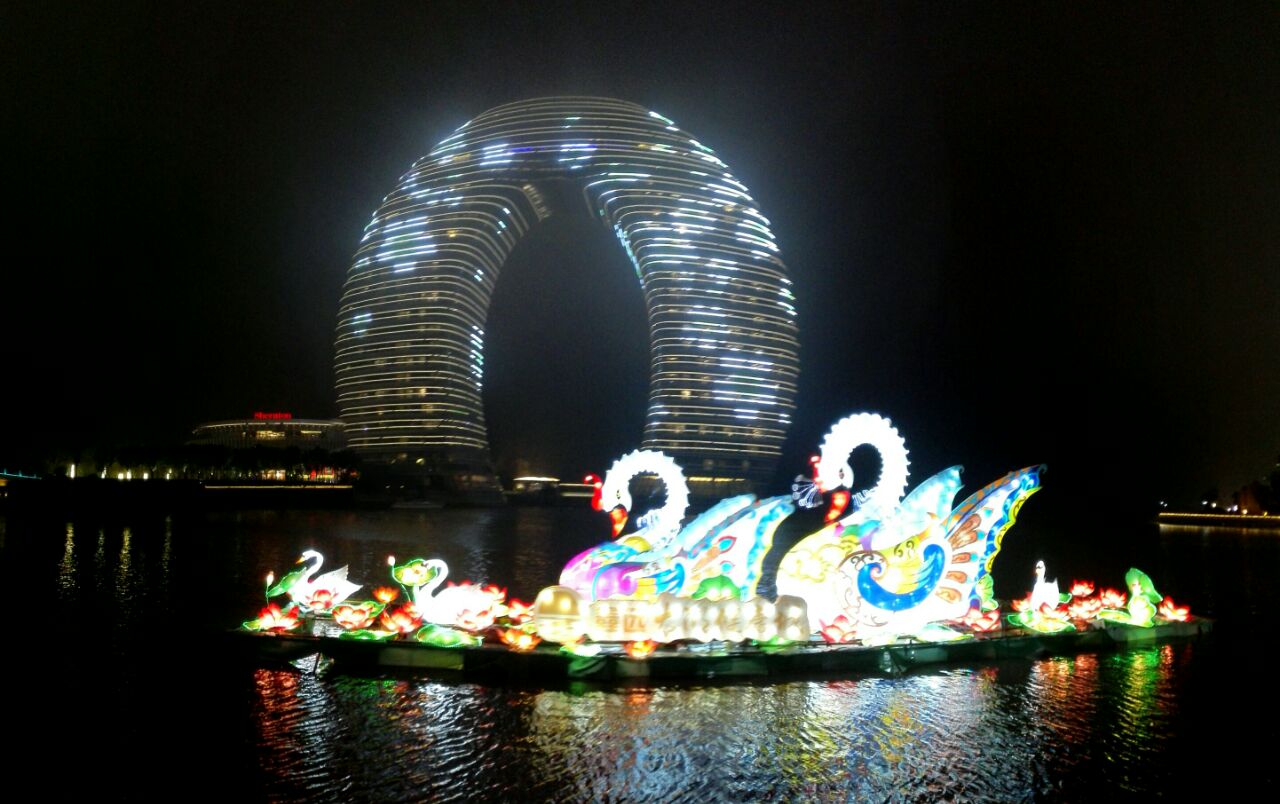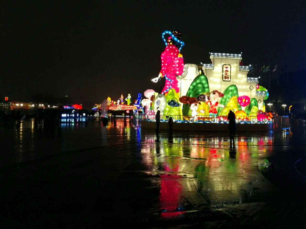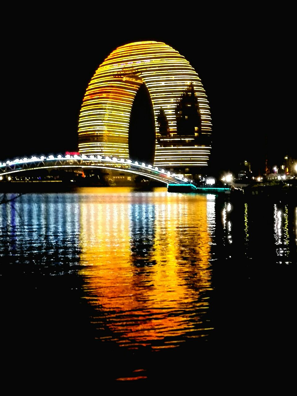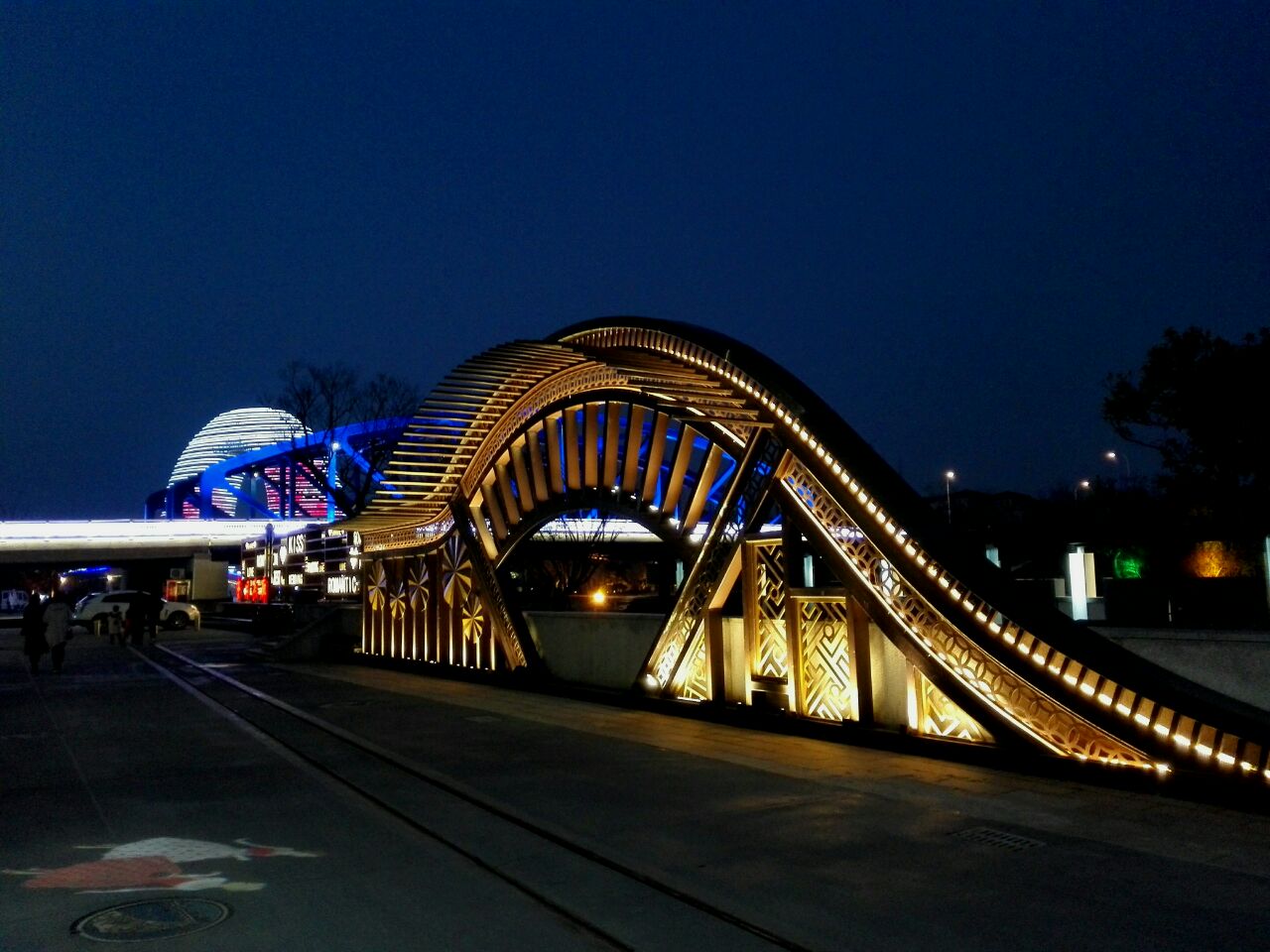 周边有很多宾馆,夜景非常漂亮。离月亮酒店非常近,穿过一个地道就到了。房间空间还可以