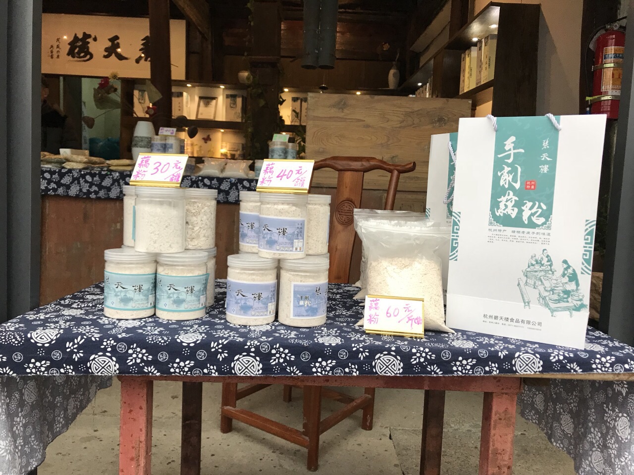 现在纯粹是个临街卖藕粉及五谷杂粮的所在。 藕粉应该是其主打产品。 大年初五店里只有一位守店老人现在纯粹是个临街卖藕粉及五谷杂粮的所在。 藕粉应该是其主打产品。墙上有各种宣传资料。 大年初五店里只有一位守店老人。 对着在运河水面上跳舞的雨滴,不免有些寂寞。