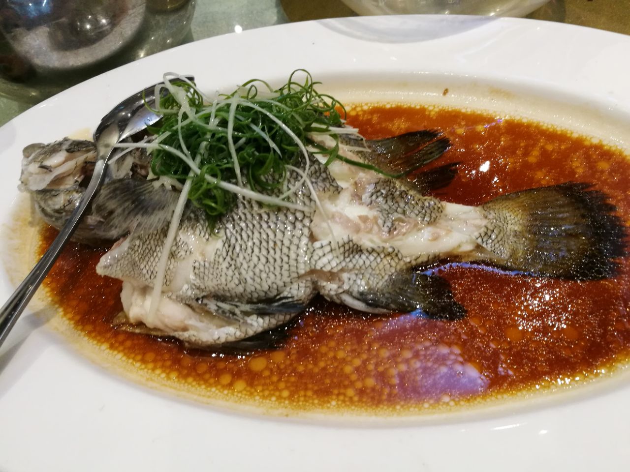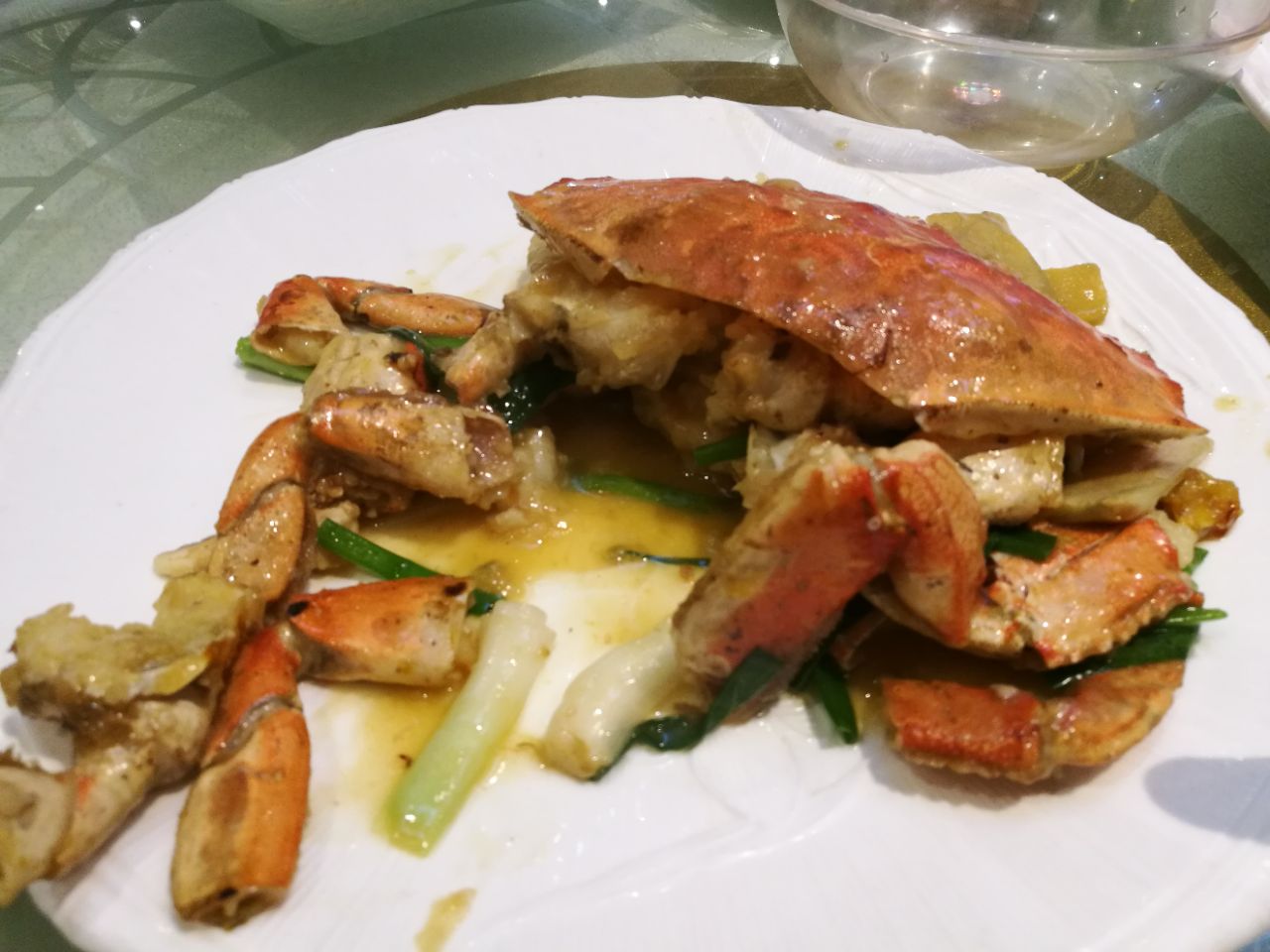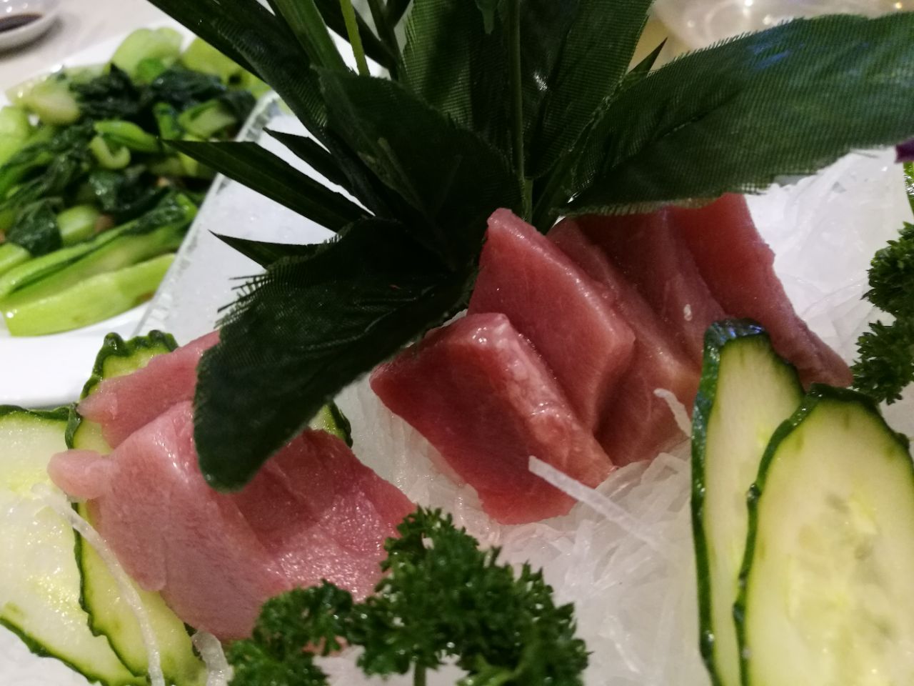 今天看到有澳洲金枪鱼就来品尝一下,168元一斤,刺身食法,因为是冰冻了几天,吃起来就差了一点点,但按照这个价钱,在其它地方是吃不到的,因此还是值得的。另处点了烧鹅,瓜子斑,皇帝蟹,炒迟菜心,煲淋娃娃菜,陈村粉,紫薯搏撑,最后甜品是双皮奶。共花费900元。