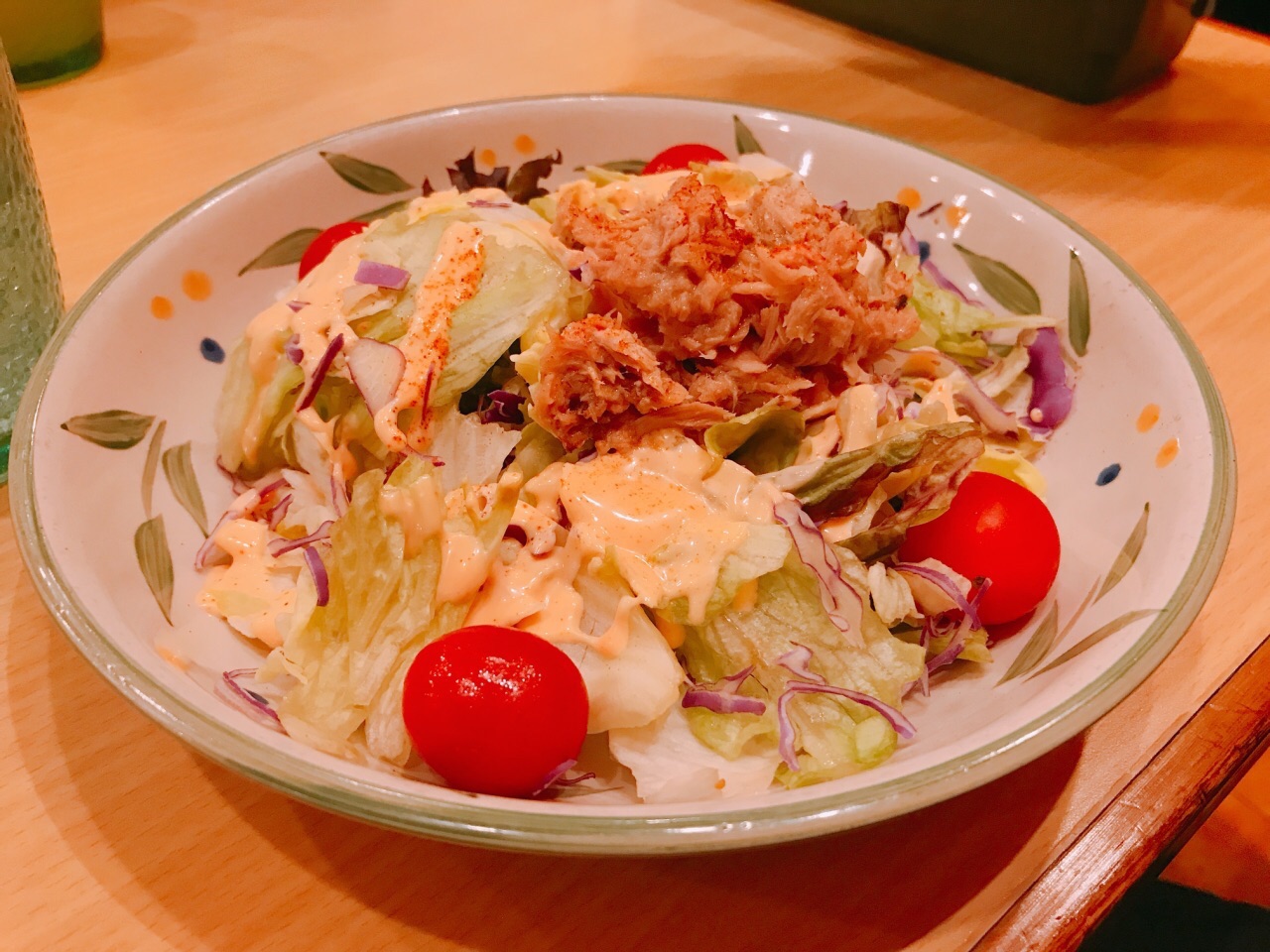 焗蜗牛这个必点,特殊的香气配上一点点蒜蓉,口感特别棒。金枪鱼沙拉中规中矩,金枪鱼给的还是蛮多的