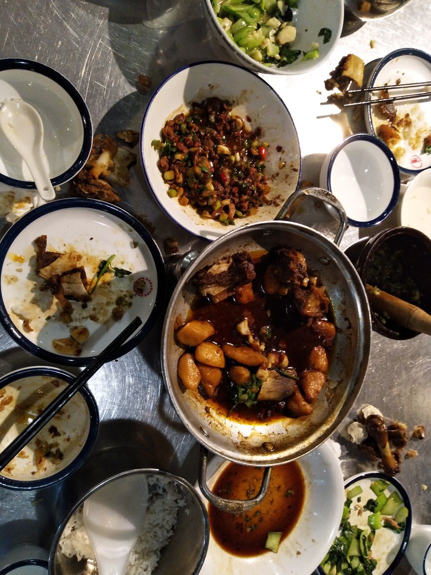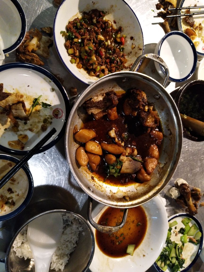 就在酒店旁边,一家四口,点了一份炸花生米,一份擂椒皮蛋,一份炒上海青,一份辣炒鸡杂。一份牛排炖土豆,一片炖猪脚,还要了一瓶啤酒。每个菜都很对胃,是春节旅行期间吃得最对胃的一顿,更惊喜的是,结账时才177元!太实惠了。