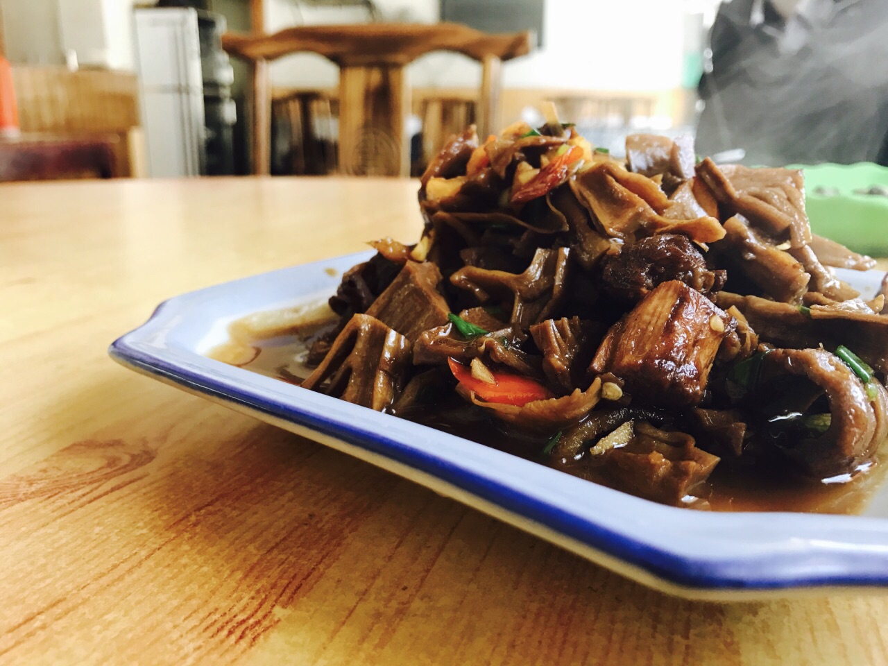 #交通#离滑雪场还是很近的一个地方,开车大概5分钟就可以到了~ #环境#就类似于农家乐的感觉,多为圆桌,不过座位还是满干净的~ #服务#这边的老板服务还不错,有问必答,还会提醒我们时间快到了要赶紧出发之类的~ #农家土鸡煲#整整一只鸡,端上来就感觉很不错~蜡黄蜡黄的汤~可以让老板剪开来,吃起来就更方便了~鸡肉很嫩,鸡皮有点油,但是汤很鲜美,而且一点都不腻,128一只的价格也算满值的~ #毛笋干烧肉#28元一份,笋干比较香,烧的很入味了~ #包菜#醋溜的手法,感觉比较开胃~ 整体而言4个人,3道菜,170元,性价比还是很不错的,特别是在景区附近~