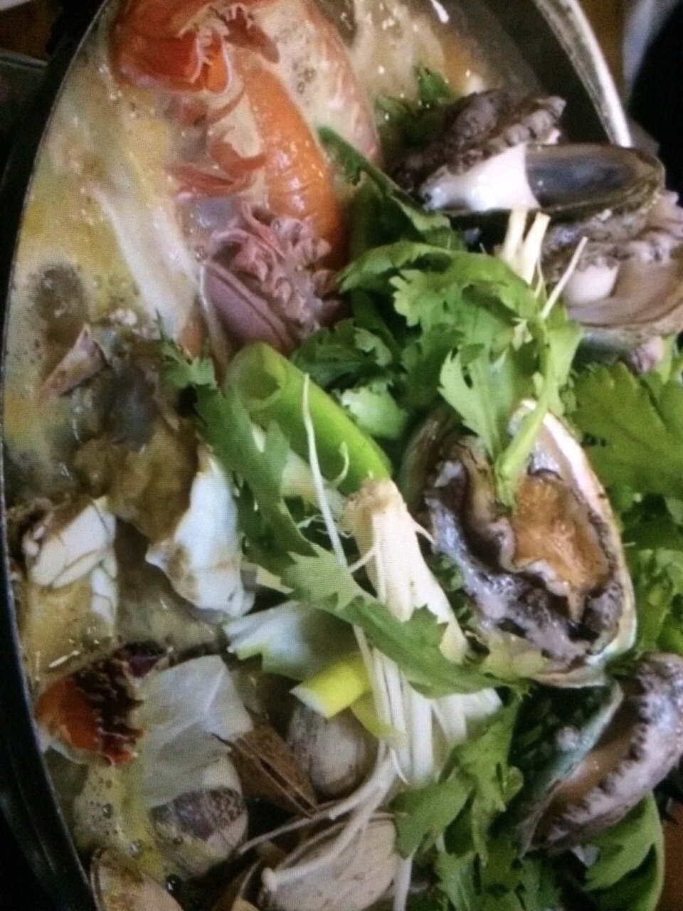 店真的有点冷清的样子,位置还不错的,吃了一顿之后大概知道些原因,不是说食物不新鲜,但是做得不怎么好吃,而且价格又没有优势,真的竞争力不强,老板娘很热情,只会一点中文也拼命介绍,海鲜锅份量还是够的,虾很大一只,年糕吃着很腻,剩下很多都不想吃了,总体来说一般而已。