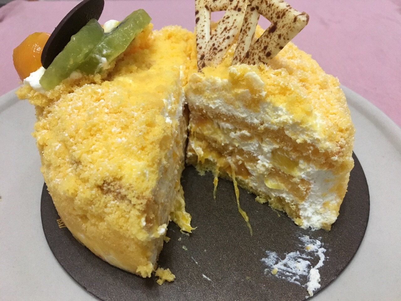 ...,口感是相当的松软,切开来看得见里面夹着的芒果泥,既有蛋糕的奶香、也有芒果的清香,根本吃不腻呀