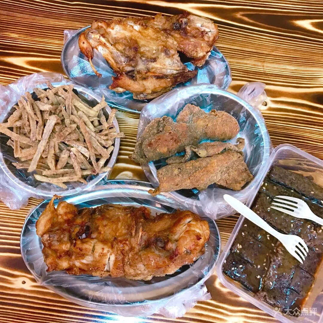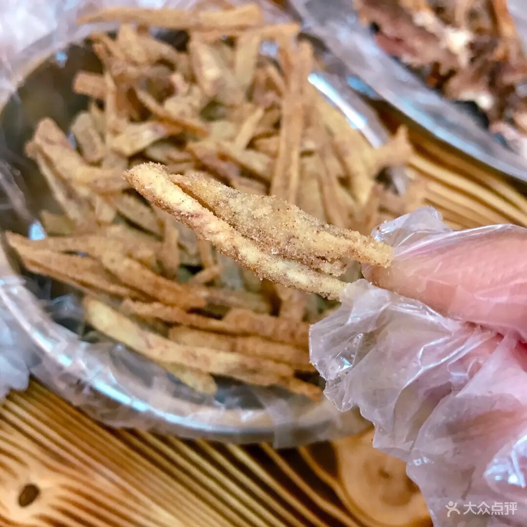 之前收到私信吃货说二郎巷的阿姨鸡骨 开到西街了~之前在二郎巷我也有去吃过 这次西街的店面更大厨房更专业了! 依旧点了¥9的鸡骨架 ¥5的炸鸡皮 然后点了吃货推荐的¥5一份酱香米糕 还好奇点了没尝过的¥6 手斯芋条 他家的鸡骨架是泉州市区的一股清流~ 为什么这么说?因为他俩鸡骨腌制的味道很有闽南味道,但没有辣!对,不辣!这应该是不吃辣者的福音,因为肉的份量在尝鲜之外还是不错的 酱香米血糕一份6条,我还特意让老板花生酱多加了,它的米血糕不会炸得过火,是比较柔软的,而且这个花生酱味道刚刚好~ 这个手撕芋条我有点好奇,它凉了之后怎么还可以这么好吃,洒在上面的甘梅粉凉后也不影响口感,两个人点多了我还把它打包回家当零食吃!酥脆酥脆又带着甘梅的甜!