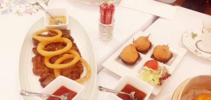 在王府中环的四楼,环境很不错,服务也很不错,当然了收10[%]的服务费,,服务态度也非常好。一大早上就去了开门的第一桌,服务员看见我们想坐在沙发上,马上好几个人一起过来把桌子给拼起来,让人感觉很满意。菜单有好几个,有热菜的甜品的点心的和酒水,茶位费是四种茶叶每人¥13白开水每人¥10,茶叶质量不错这个价位很值,服务员还会主动问是否需要添加茶叶。值得表扬的是甜品做得非常好,热菜价位相对较高,味道还可以,海鲜类价位最高,皇室牛排肉质很嫩,点心很不错,特别是大蟹钳味道非常好值得推荐。目前人气很旺,中午基本上都坐满了。现在搞活动,消费满400以上送四个小时停车券。