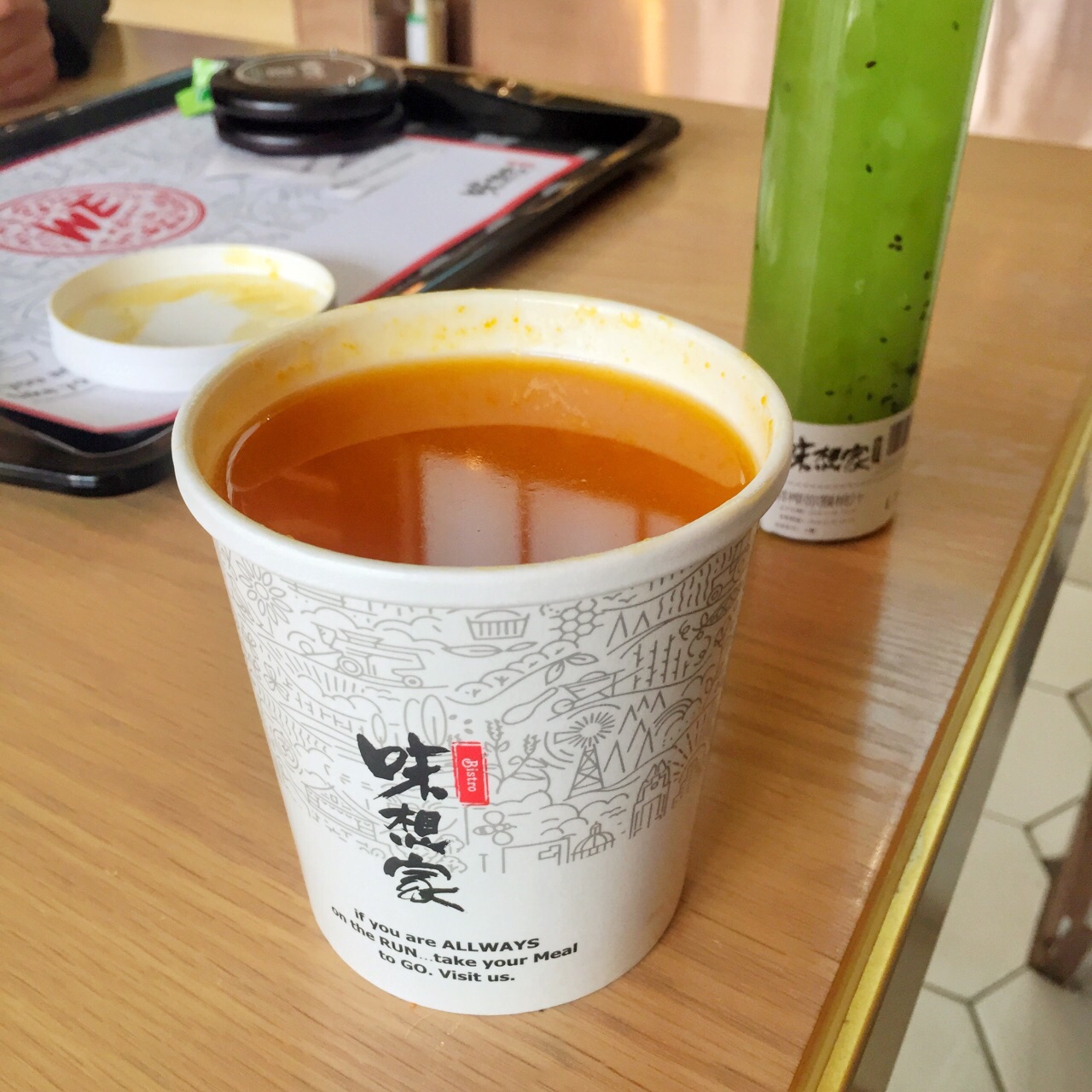 南瓜羹很好喝耶,猕猴桃汁是诚意满满的鲜榨,若不是因为胃还不是很舒服,一定会选我最喜欢的麻辣香锅炒面啦