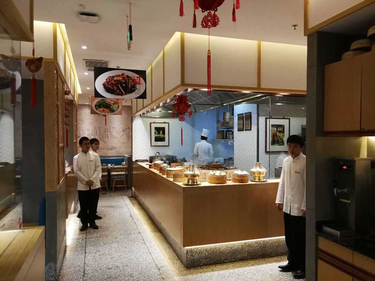 位于丰台万达广场五楼东北角的“凤临阁”是古城大同的历史餐饮名店,迄今已有近500年的发展历史。凤临阁酒楼始创于明朝正德年间,因明代1518年“游龙戏凤”的故事和清朝“百花烧麦”的佳话而闻名于世,是历代名人雅士云集、美食家乐聚的地方。 今儿我和同事两人来探店。 【环境】简约明快的内饰风格,非常雅致,光鲜的明厨明档,干净整洁,令人赏心悦目。在长方形的建筑面积内,设置中央厨房,将餐区划分几个区域,提高就餐时的私密性,餐厅设计颇具匠心。 【菜品】百花烧卖,各种烧卖、各种面食为其招牌。 [什锦火锅]我和同事两人吃什锦火锅还是很实惠的。什锦包括海参、鱿鱼、白肉、牛肉、肉丸、素丸子、黄花菜等各种食材十五种。和同事说话聊天,就餐时间长,火锅里的食材不会凉的。 [养生葫芦丝]最赞厨师的刀工,葫芦丝细如挂面,摆盘精美,口感爽滑清脆,一道很棒的佐餐开胃菜。 [刀削面]筋道爽滑,口感很棒,臊子口味咸香,好吃好吃。 【服务】很棒,小帅哥服务热情周到,我们入座后,递上热烫的擦手毛巾,五星好评。 【不足】菜量都偏少,价格小贵。 【评价】环境、服务五颗星,菜品质量四颗星,性价比一般般,准确说偏贵。